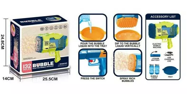 Пістолет з мильними бульбашками KB 1141 (24) акумулятор 3.7 V, підсвітка, мильний розчин, USB кабель, тарілочка, в коробці
