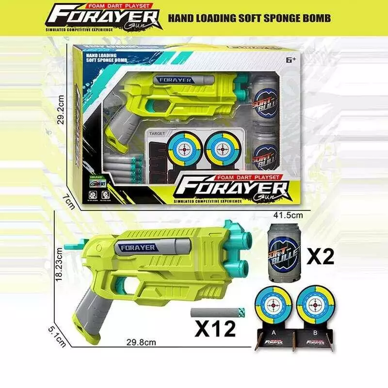 Главная > Каталог > Игрушки > Игрушечное оружие > Пістолет з мішенню JM 002 B (36) 30х5х18 см, механічний принцип роботи, 4 картонні мішені, 2 банки, 12 м’яких патронів, в коробці оптом