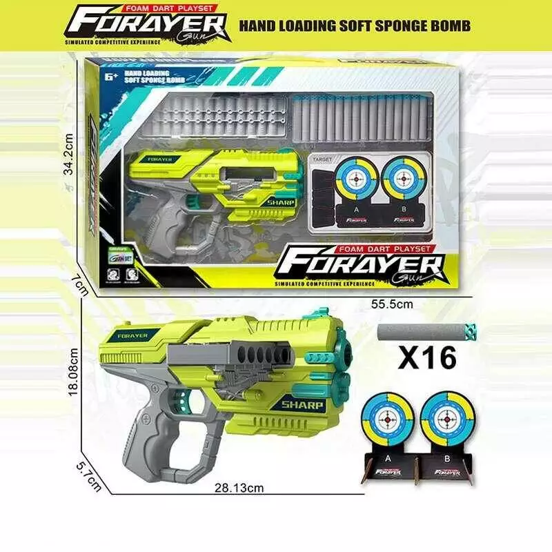 Главная > Каталог > Игрушки > Мыльные пузыри > Пістолет з мішенню JM 003 B (24) 28х6х18 см, механічний принцип роботи, 4 картонні мішені, 16 м’яких патронів, в коробці оптом