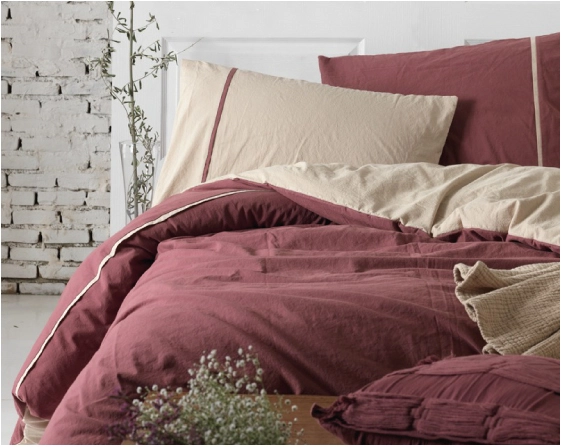 Півтораспальний комплект постільної білизни Limasso "Vahemere" (бордово-бежевий) 144613
