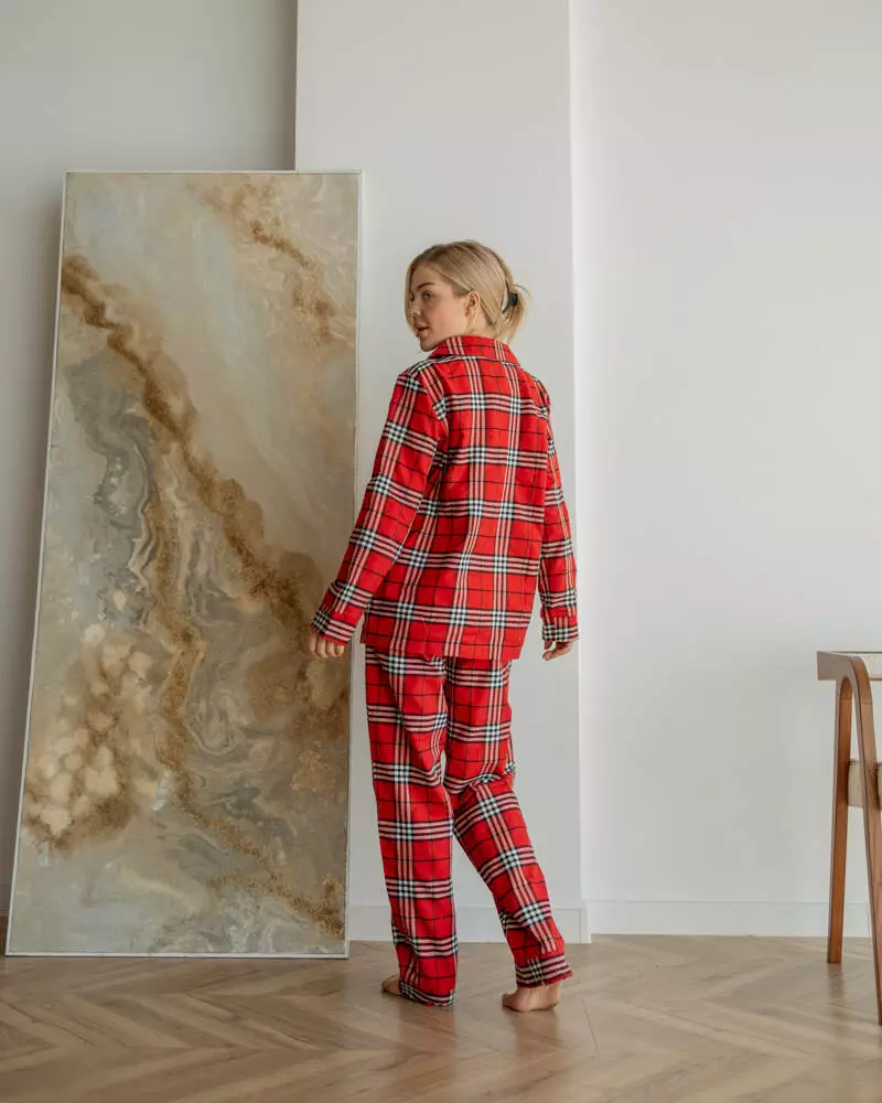 Піжамний костюм у клітинку з якісної тканини байка. Комплект: зручна сорочка на ґудзиках з коміром, штани прямого крою з кишенями на резинці. Тканина байка преміум класу, м'яка, приємна на дотик, не кашлатиться. Піжама ідеально підійде для холодів для дому та сну.