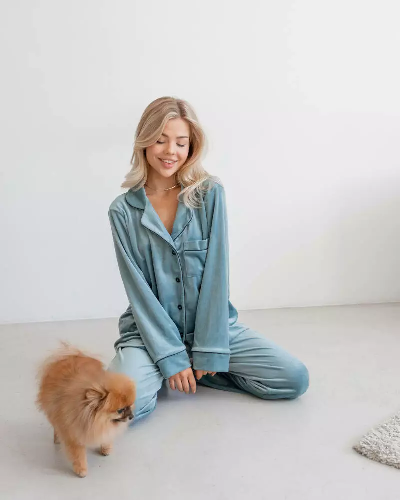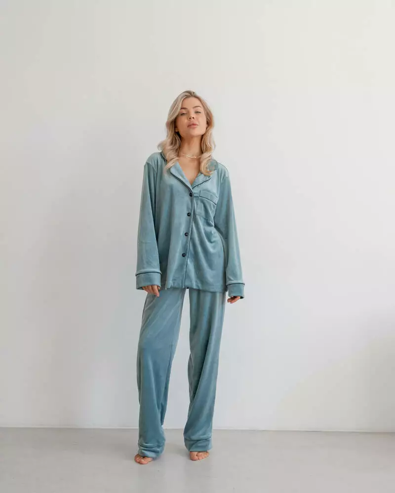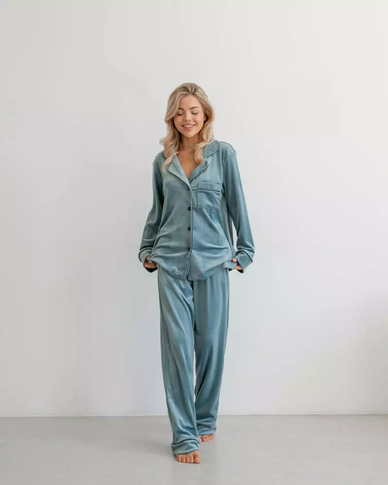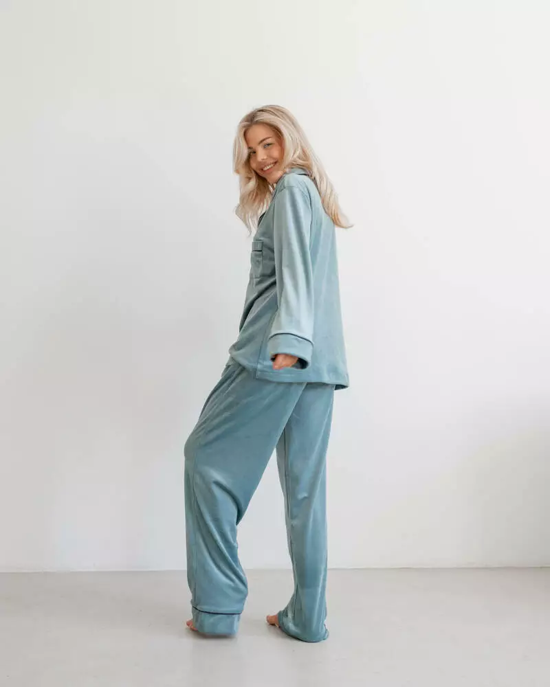 Піжама на запах велюр "Eva" Фісташка 2