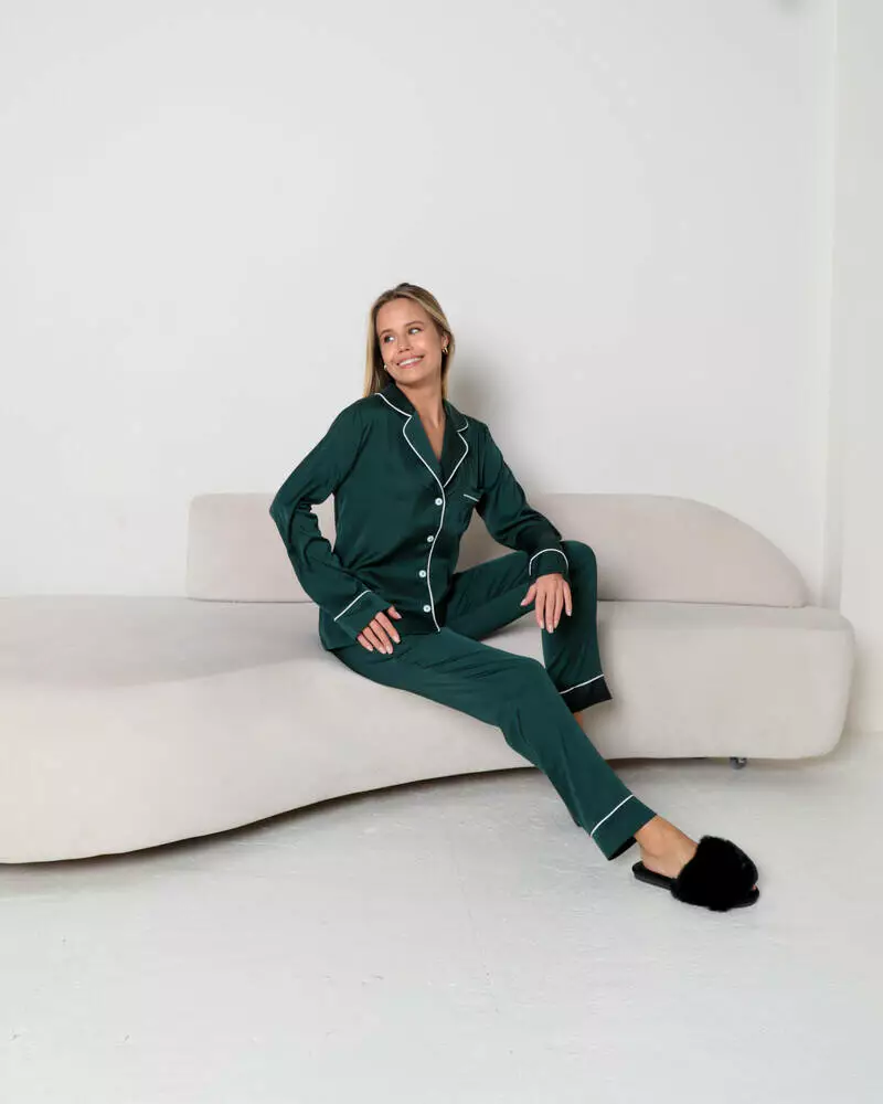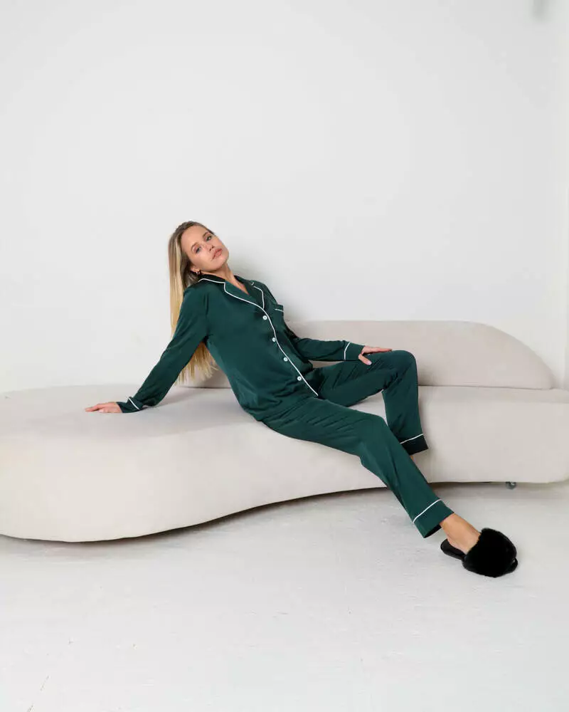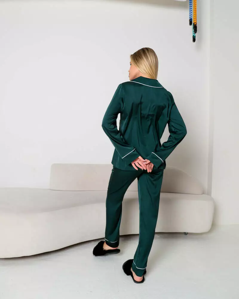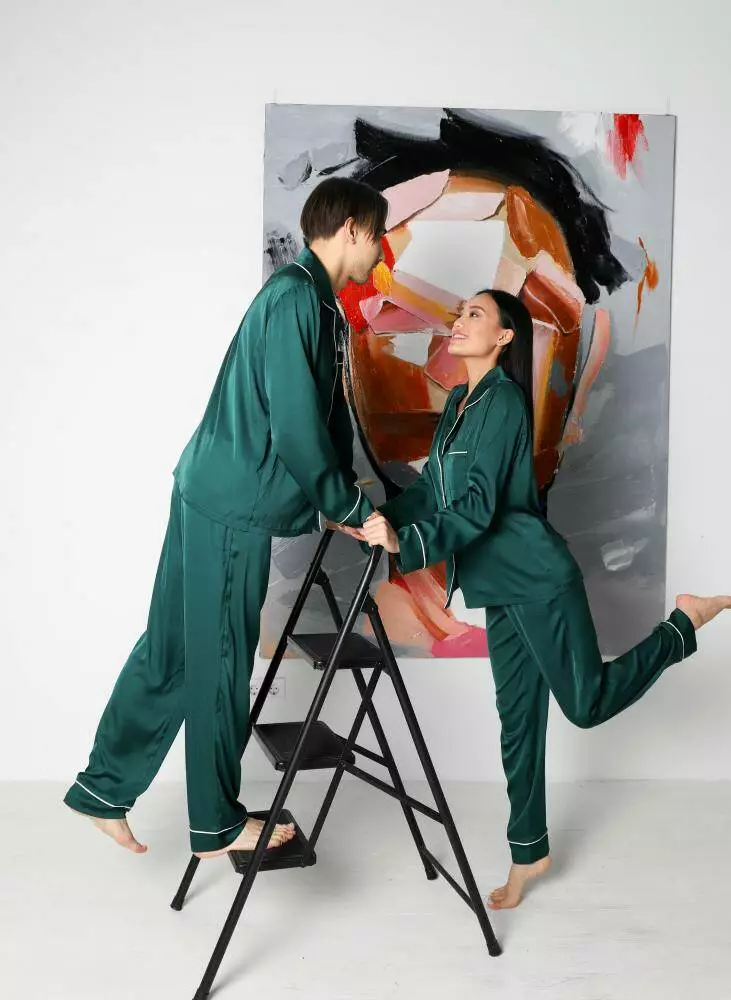 Жіноча піжама з шовкової тканини Armani. Комплект складається з довгої сорочки з кишенею на грудях та штанів вільного крою на резинці. Жіночий костюм ідеально підходить для сну та домашніх справ. Тканина майже не мнеться, добре пропускає повітря і не втрачає колір при пранні. Увага, піжама розміру XL на замовлення: пошиття такої краси займе 2-3 дні
