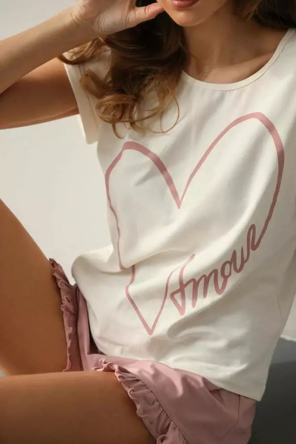 Жіноча піжама "Amour" із футболкою та шортами в рожевому кольорі від German Volf – це чудове рішення для жінок, які цінують комфорт і стиль у домашньому одязі. Незалежно від того, чи готуєтесь ви до сну, чи просто хочете розслабитися після довгого дня, ця піжама подарує вам відчуття затишку, легкості та впевненості. Вона стане вашим улюбленим комплектом для приємних моментів вдома, додаючи образу ніжності та елегантності в кожному русі.