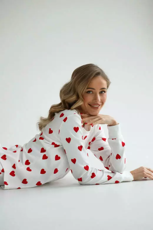 Прикрасьте свої вечори теплом та затишком у цій чудовій піжамі! М'який та приємний матеріал зі складом 100% бавовны додасть вам затишку та забезпечить приємний сон. Ця піжама - ідеальний варіант для затишних вечорів вдома. Піжама складаеться з штанів та кофтинки с довгим рукавом, що робить ваш образ ще більш чарівним. Завдяки високоякісним матеріалам, ця піжама буде дарувати вам тепло та комфорт кожної ночі. Ви заслуговуєте на найкраще, тому обирайте цю чудову піжаму з сердечками та насолоджуйтеся відпочинком!