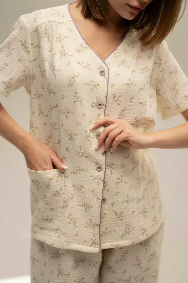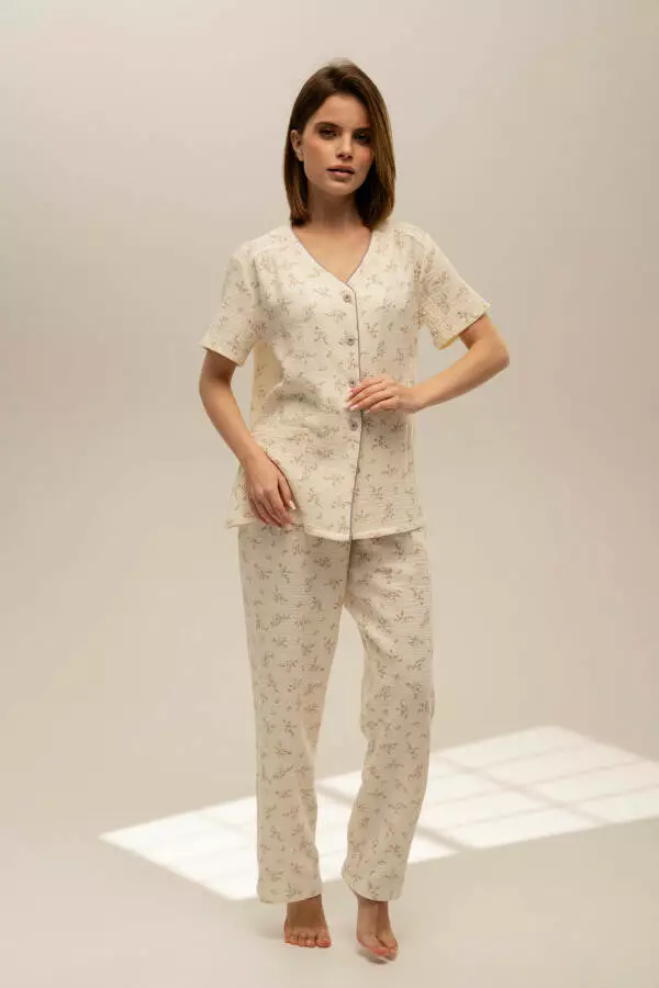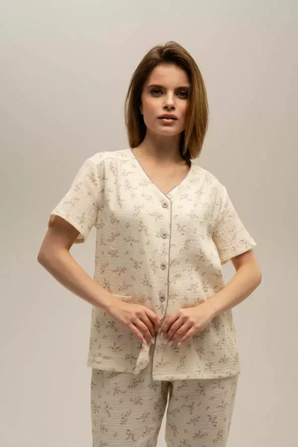 Піжамний комплект мусліновий сорочка з коротким рукавом та штани
