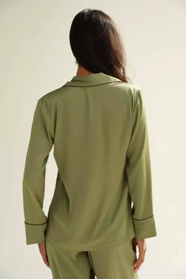 Оливковий колір цього піжамного костюму додає йому особливого шарму та стилю. Це вишуканий відтінок, який підходить до будь-якого типу шкіри та створює атмосферу спокою та гармонії. У такій піжамі ви будете виглядати стильно навіть у домашній обстановці.