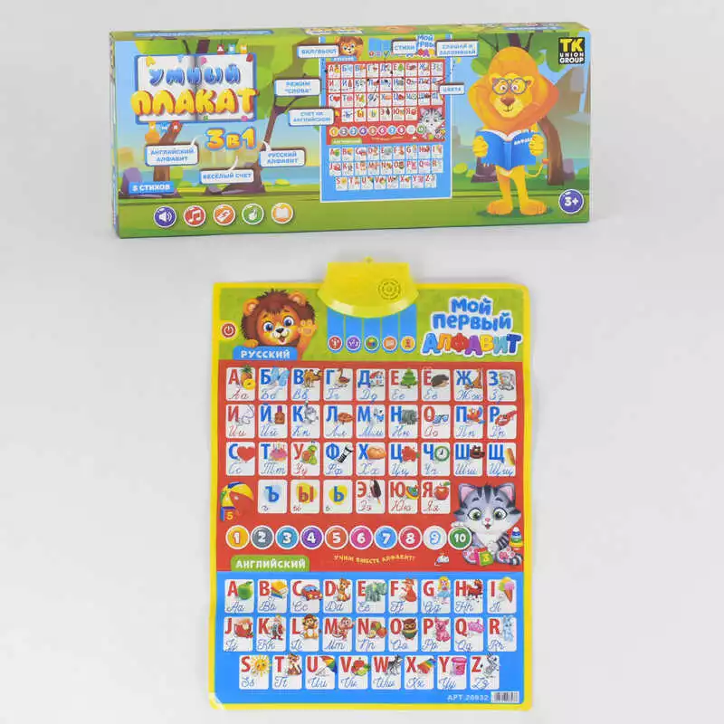 Плакат "Умный плакат 3в1" 20932 (12) "TK Group", 5 стихов, режим "слов", русско-английское озвучивание, в коробке