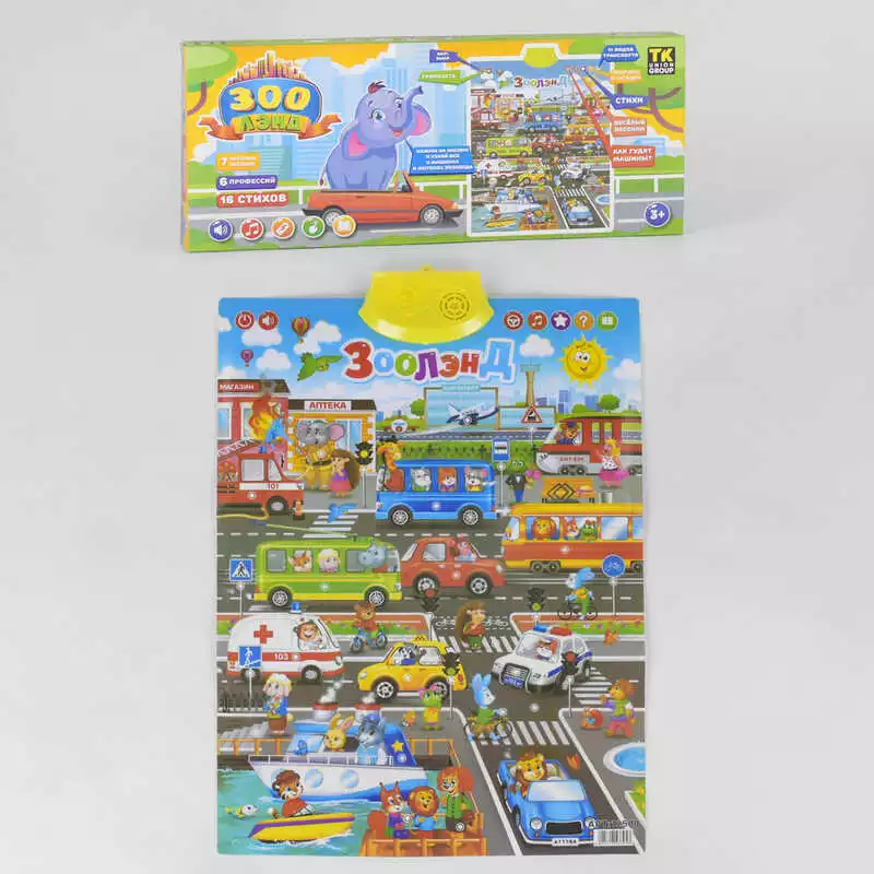 Плакат «Зоолэнд» 12500 (12) "TK Group", 16 стихов, 7 песенок, загадки, русское озвучивание, на батарейках, в коробке