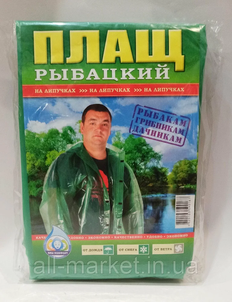 Этот плащ очень большого размера, в нем с головой можно укутаться при серьезной непогоде. Плащ застегивается на 5 липучек , фирменный темно зеленый цвет вызывает только положительные эмоции, ну а плотность материала позволяет носить его весь сезон не беспокоясь о том, что он где-то зацепится или порвется по шву.