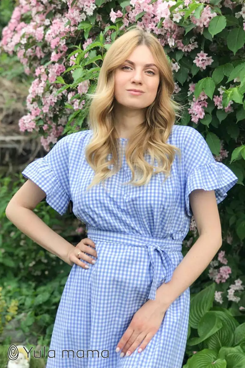 Трендовое платье для беременных и кормящих из рубашка клетки.