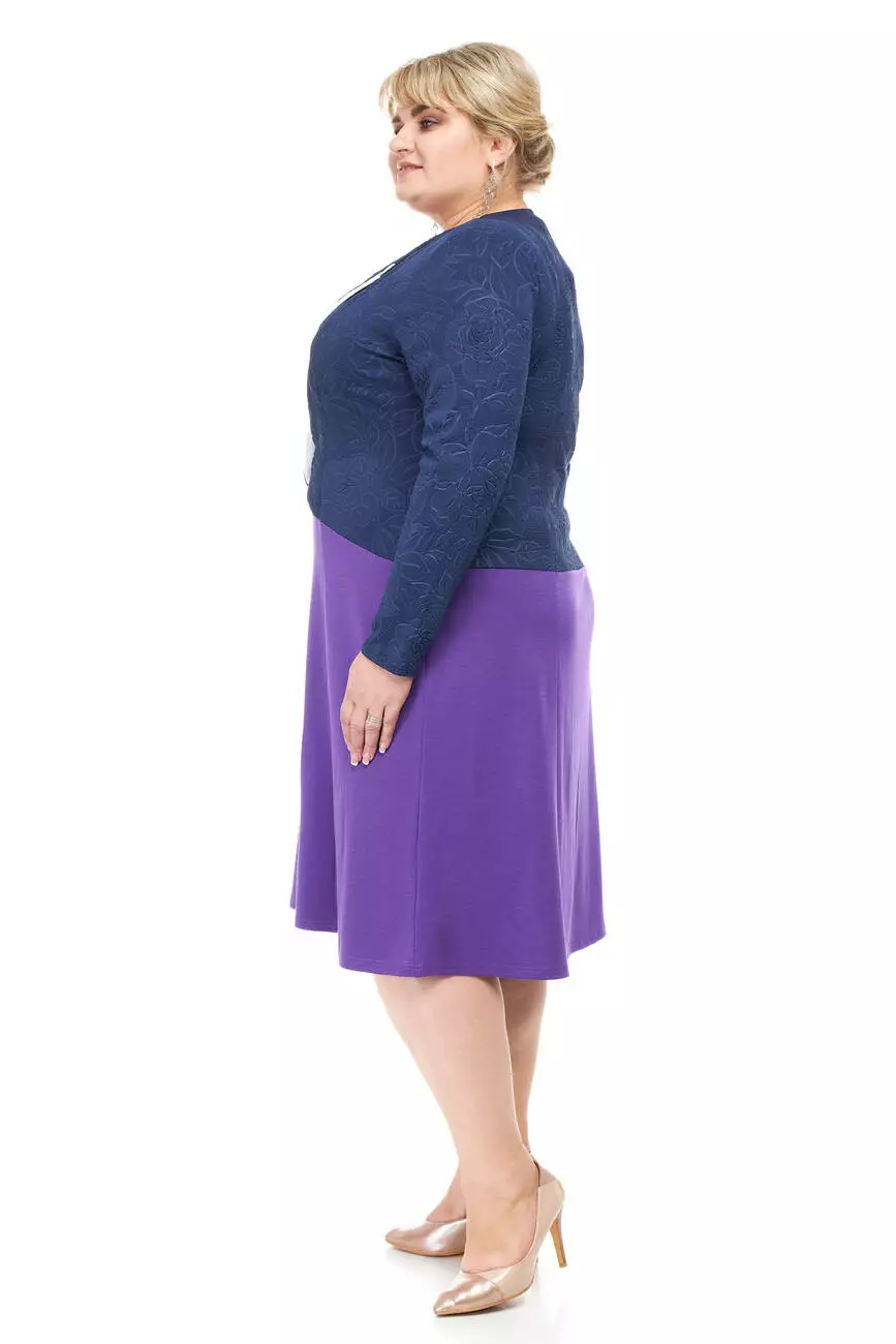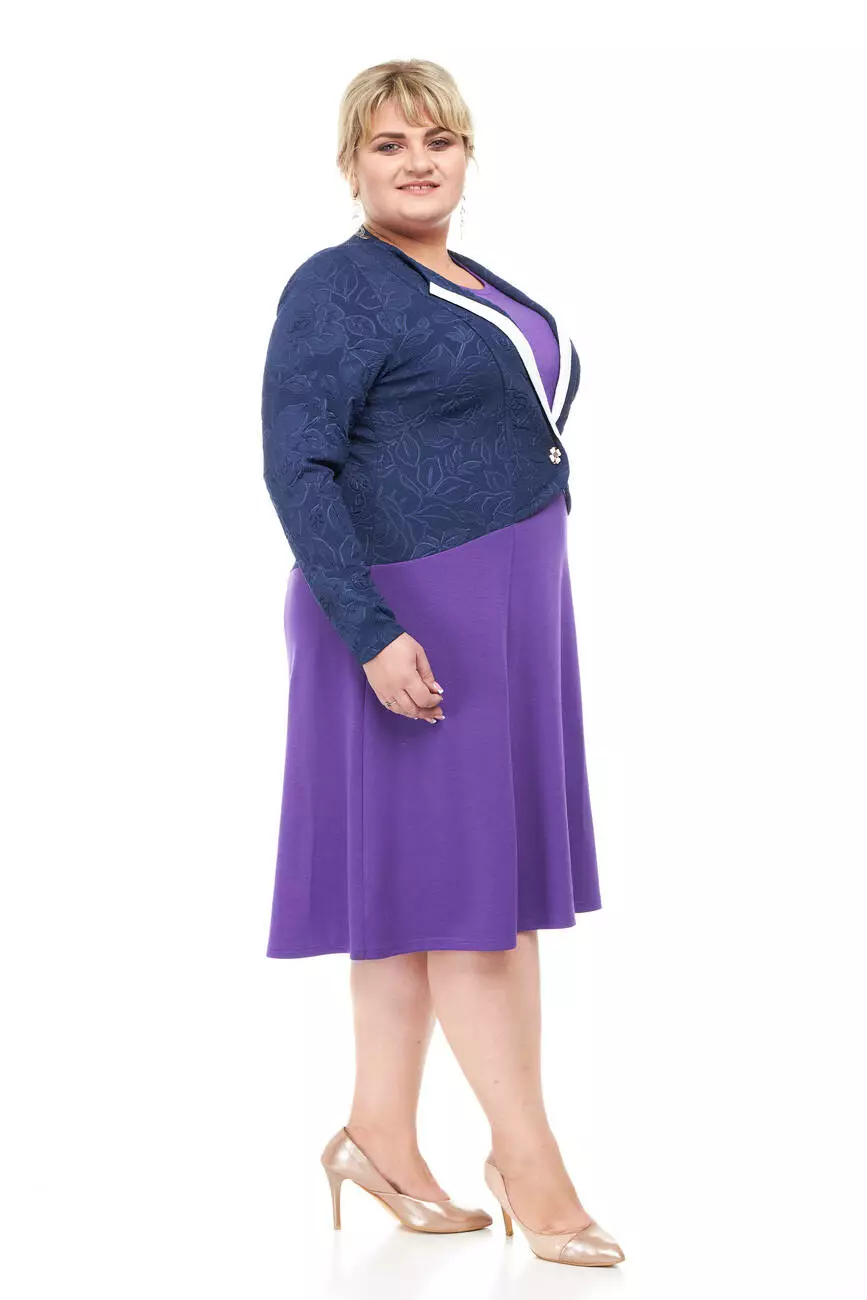 Тканина: французький трикотаж – 77% поліестер; 18% віскозу; 5% спандекс, жаккард -100% полієстер. Красива сукня Двійка з тканини жакард, кукурудза, французький трикотаж. Модель імітація двійки - сукня та болеро. Силует трапеції. Рукав довгий. Горловина кругла.Болеро на гарному ґудзику.