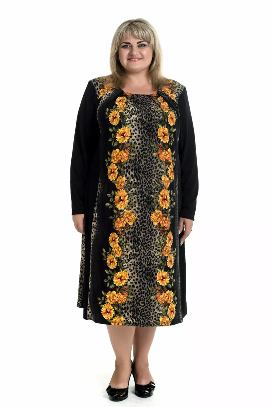 Тканина: ангора-30% бавовна; 40% віскоза; 30% поліестер. Красива сукня прямого силуету з теплої тканини. Виріб з довгим рукавом, горловина з прямим вирізом. Принт візуально подовжує силует, тканина не вимагає особливого догляду, не пом'якшується, не витирається.