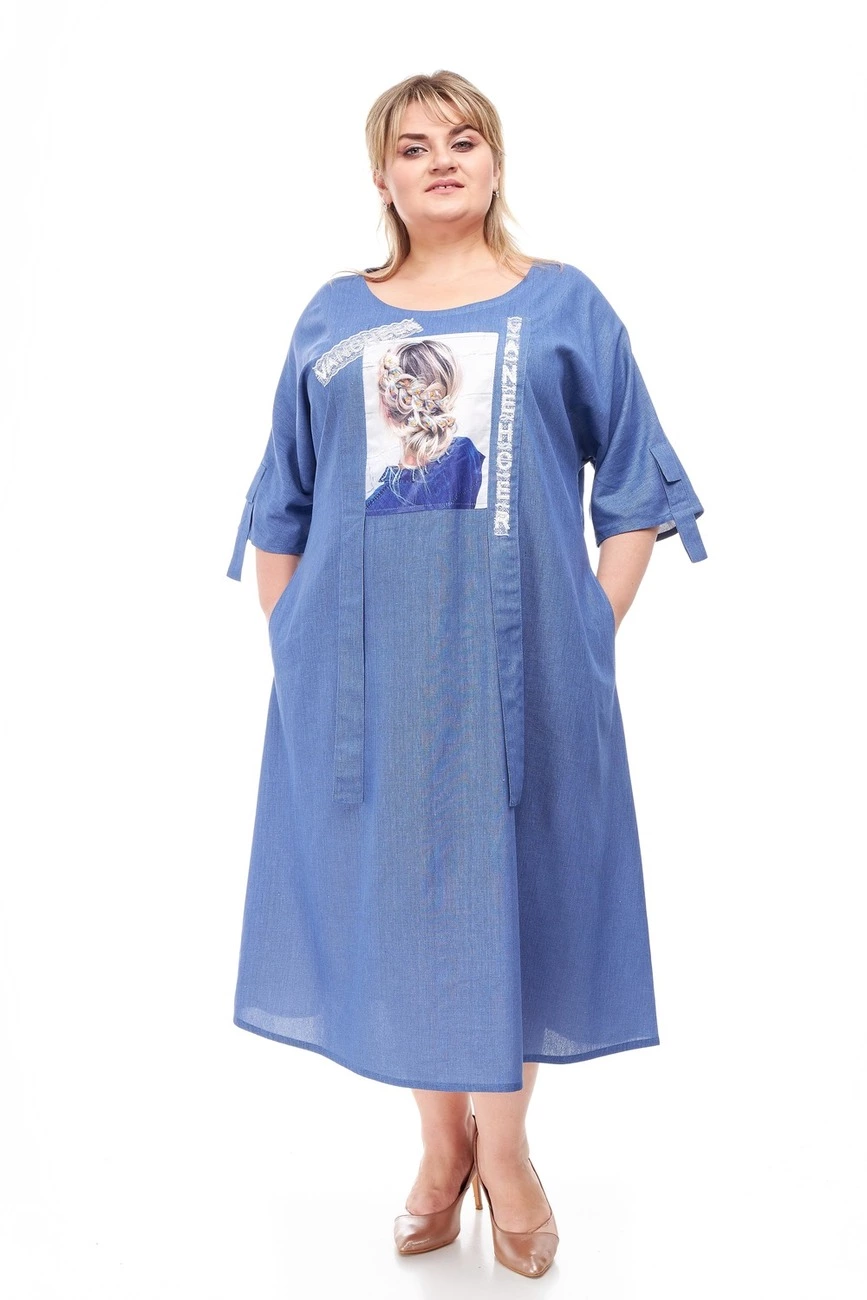 Тканина: льон-75% льон; 25% віскоза. Красива, легка сукня з тканини льон. Рукав 3/4, горловина кругла, на грудях лямки та фотонашивка. /Виріб має кишені в бічних швах. Тканина гарної якості.