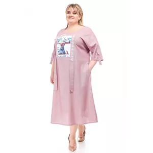 Тканина: льон-75% льон; 25% віскоза. Красива, легка сукня з тканини льон. Рукав 3/4, горловина кругла, на грудях лямки та фотонашивка. /Виріб має кишені в бічних швах. Тканина гарної якості.