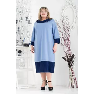 Тканина: кріп костюм-100% поліестер. Ошатне, модне плаття виготовлене з тканини креп трикотаж. Рукав 3/4, горловина хомутом. Горловина, низ рукава та низ вироби з тканини гофре. Виріб прикрашений красивою брошкою. Тканина приємна на дотик, не вимагає особливого догляду.