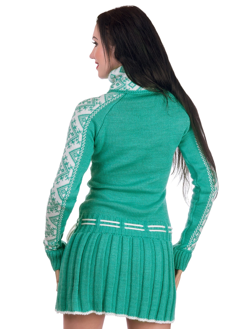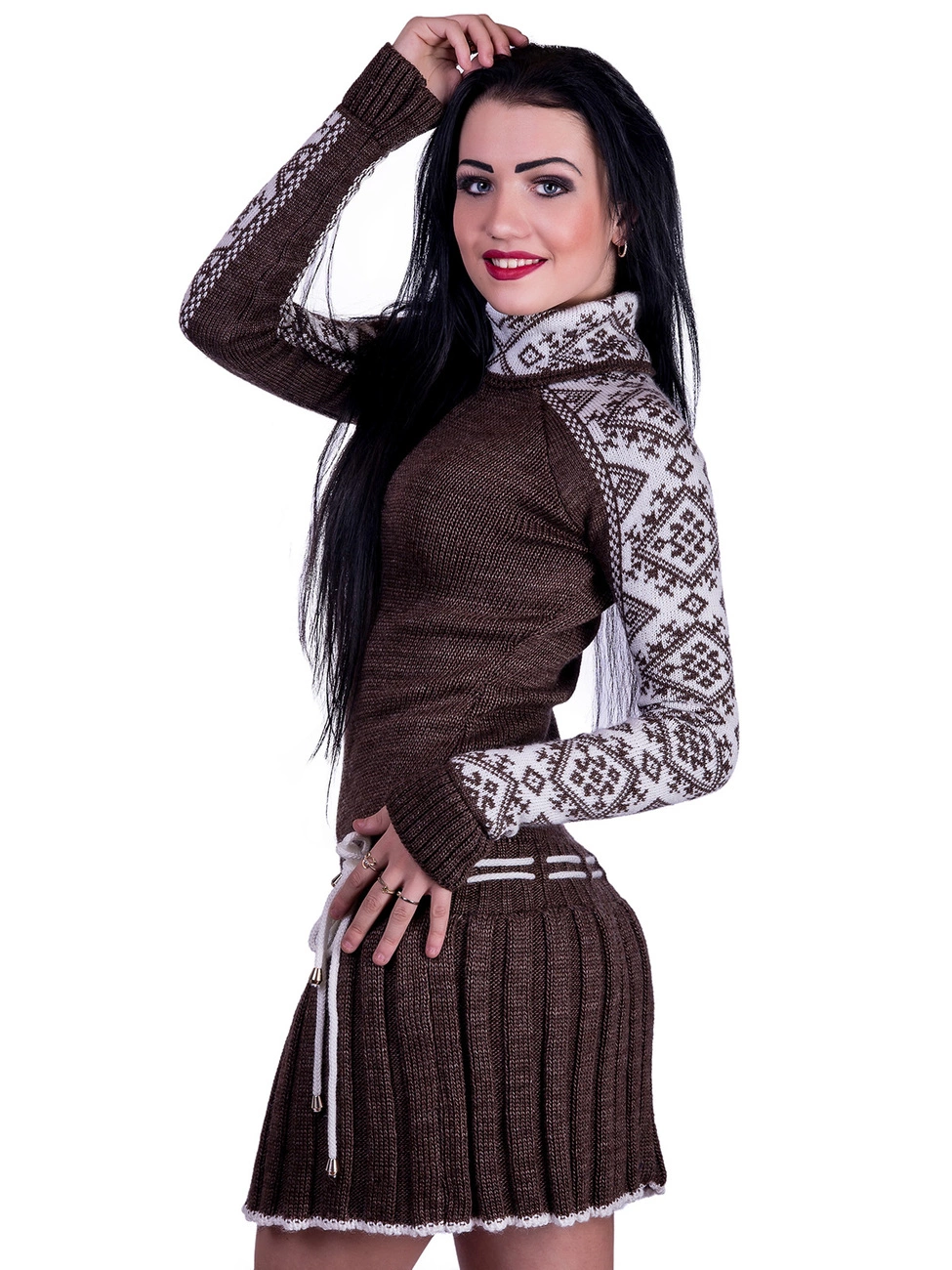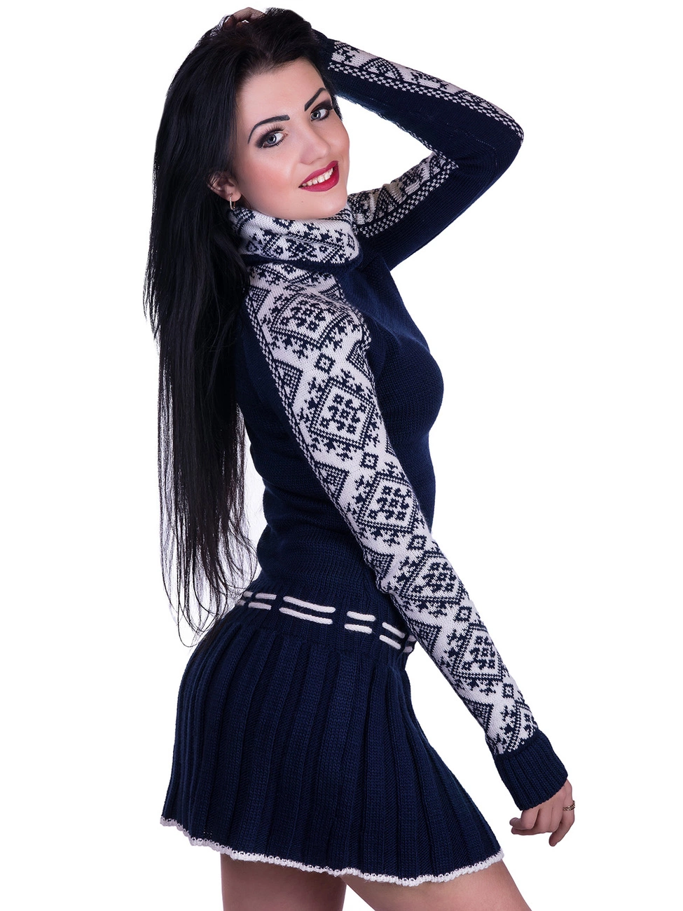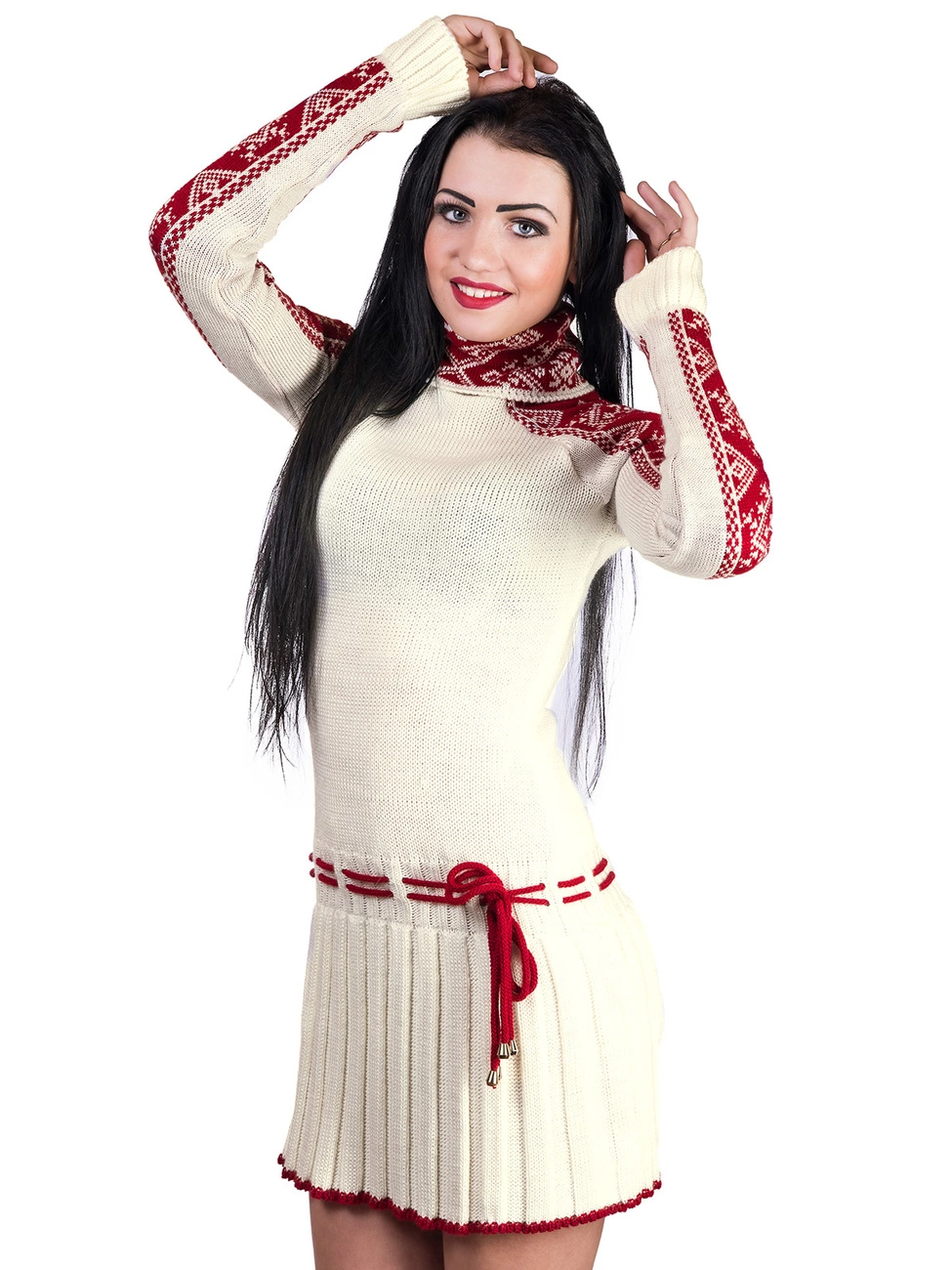 подчеркнутая двойным шнуром, юбка в складочку длинной выше колена,