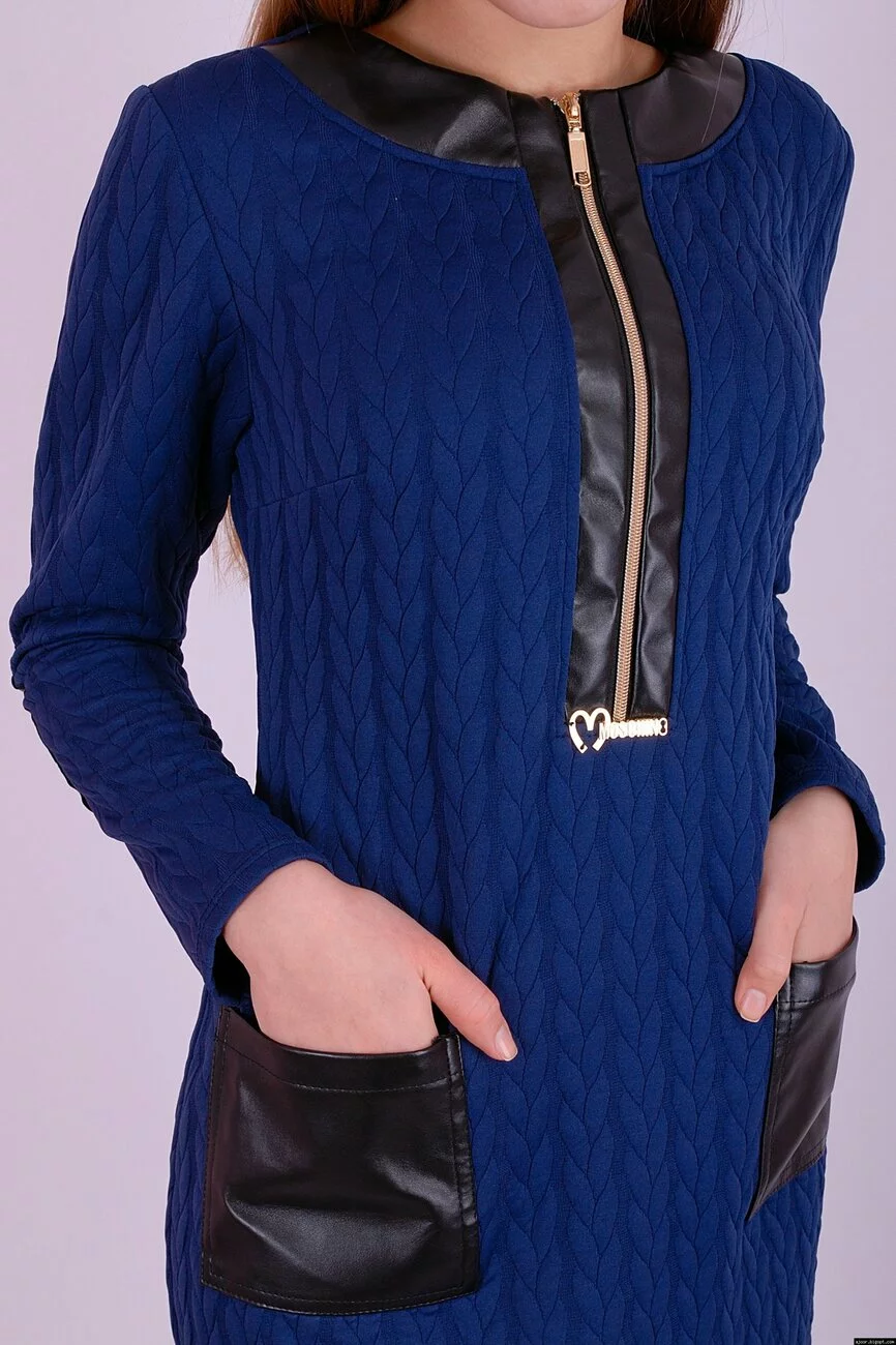 утепленного трикотажного полотна с рисунком косичка ,платье