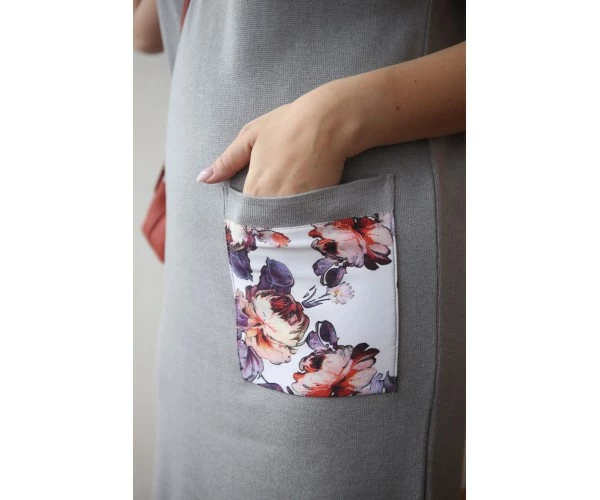 Стильное, удобное, свободного кроя платья не будет сковывать Ваши движения.  Оснащено вставкой с цветочным прнинтом, которую можно спрятать с помощью