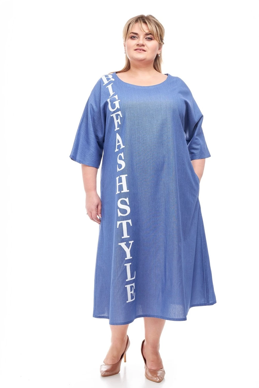 Тканина: льон-75% льон; 25% віскоза. Сукня з тканини льон, вільного силуету. Рукав короткий, горловина кругла. Лицьова частина виробу збоку та спинка прикрашені буквеною накаткою. У бічних швах кишені. Тканина гарної якості.