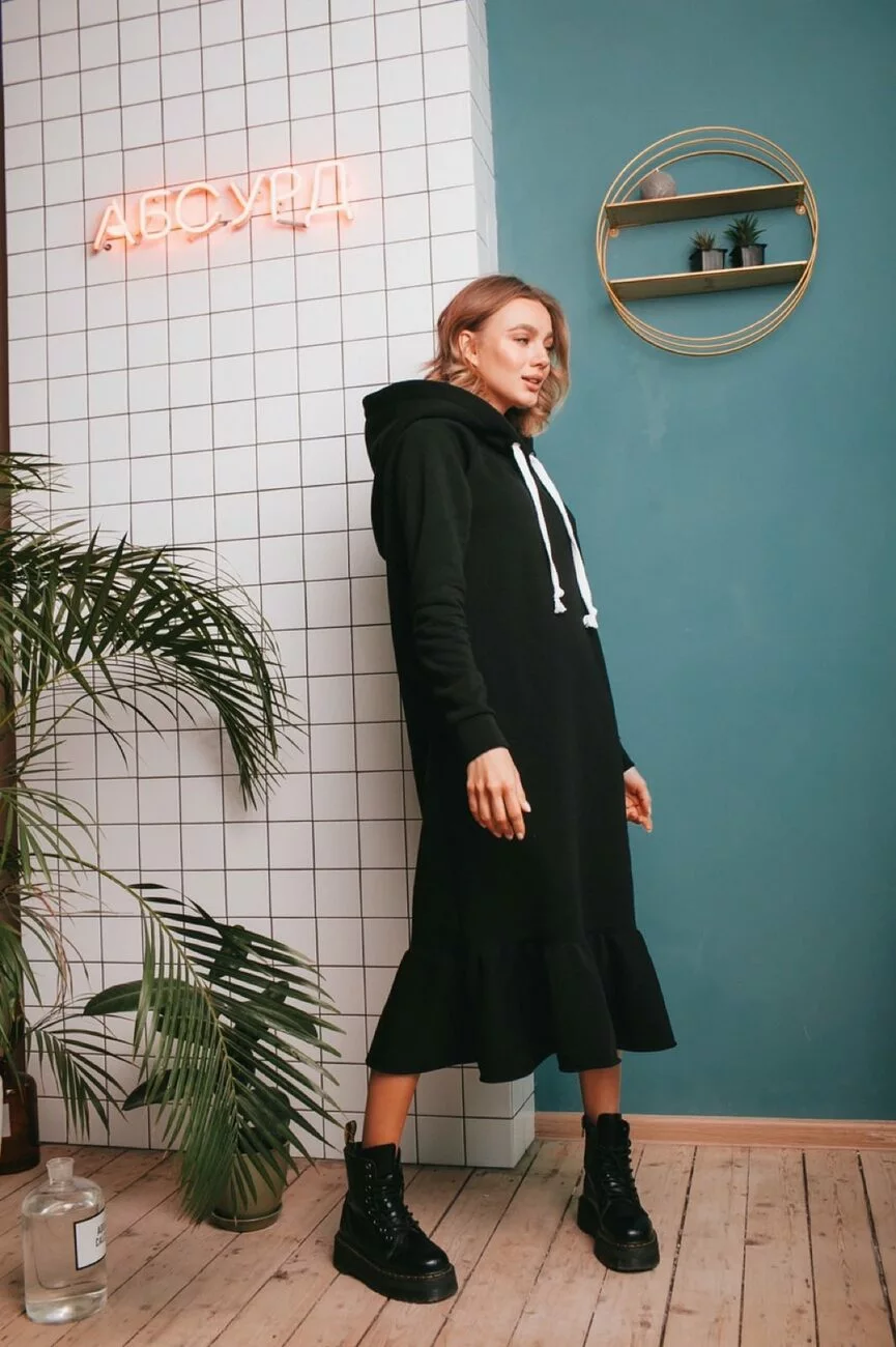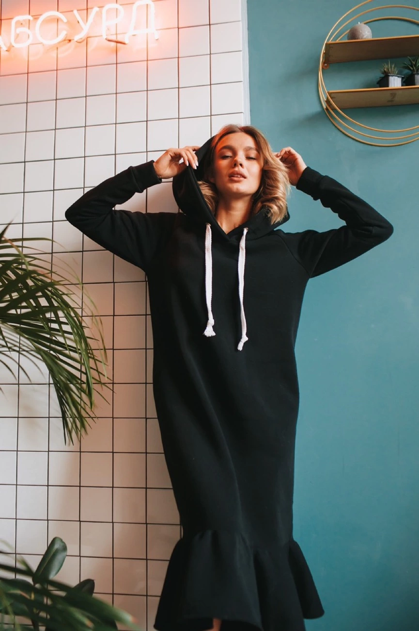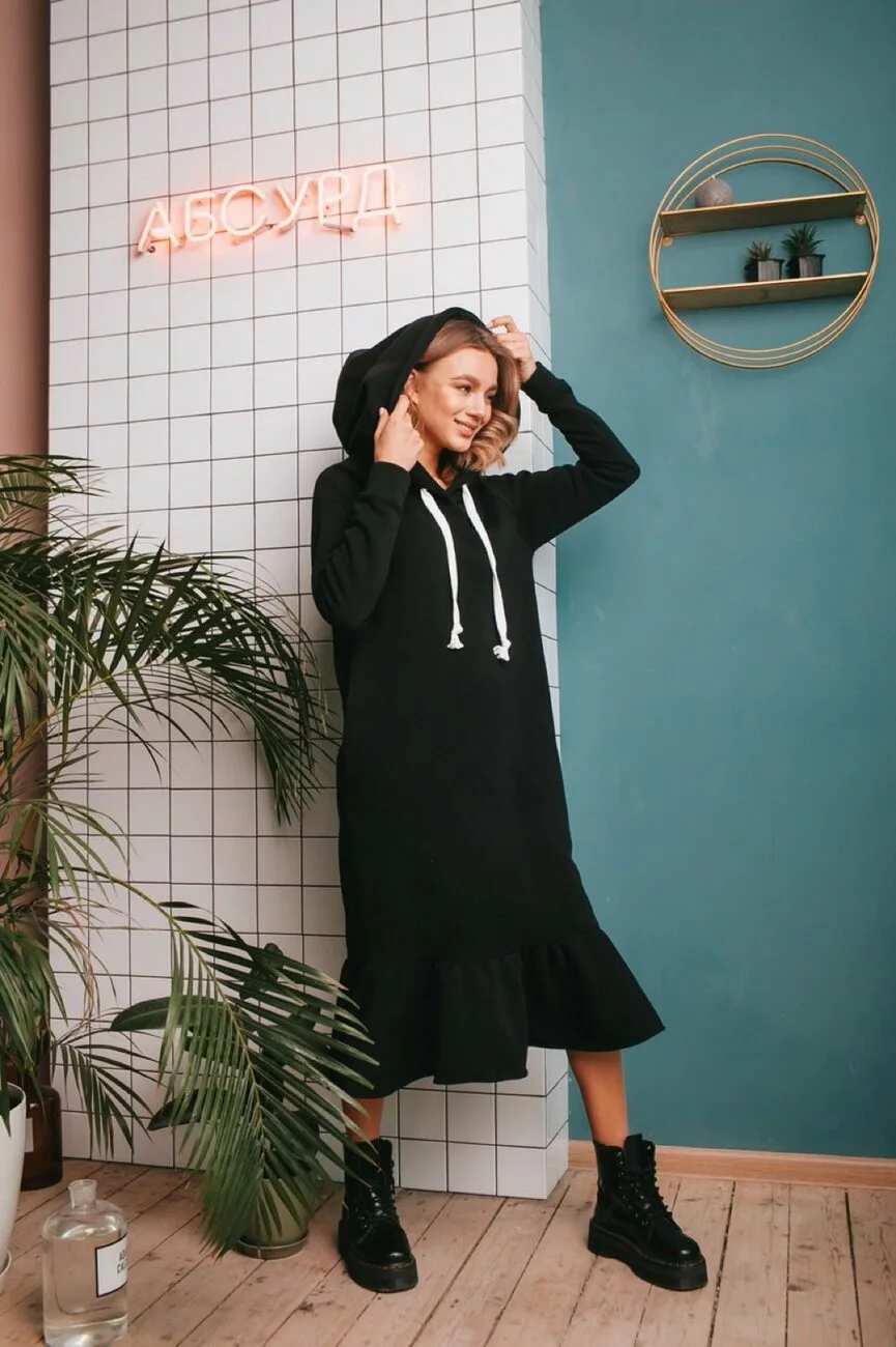 Платье свободного кроя ,рукав реглан,капюшон двойной