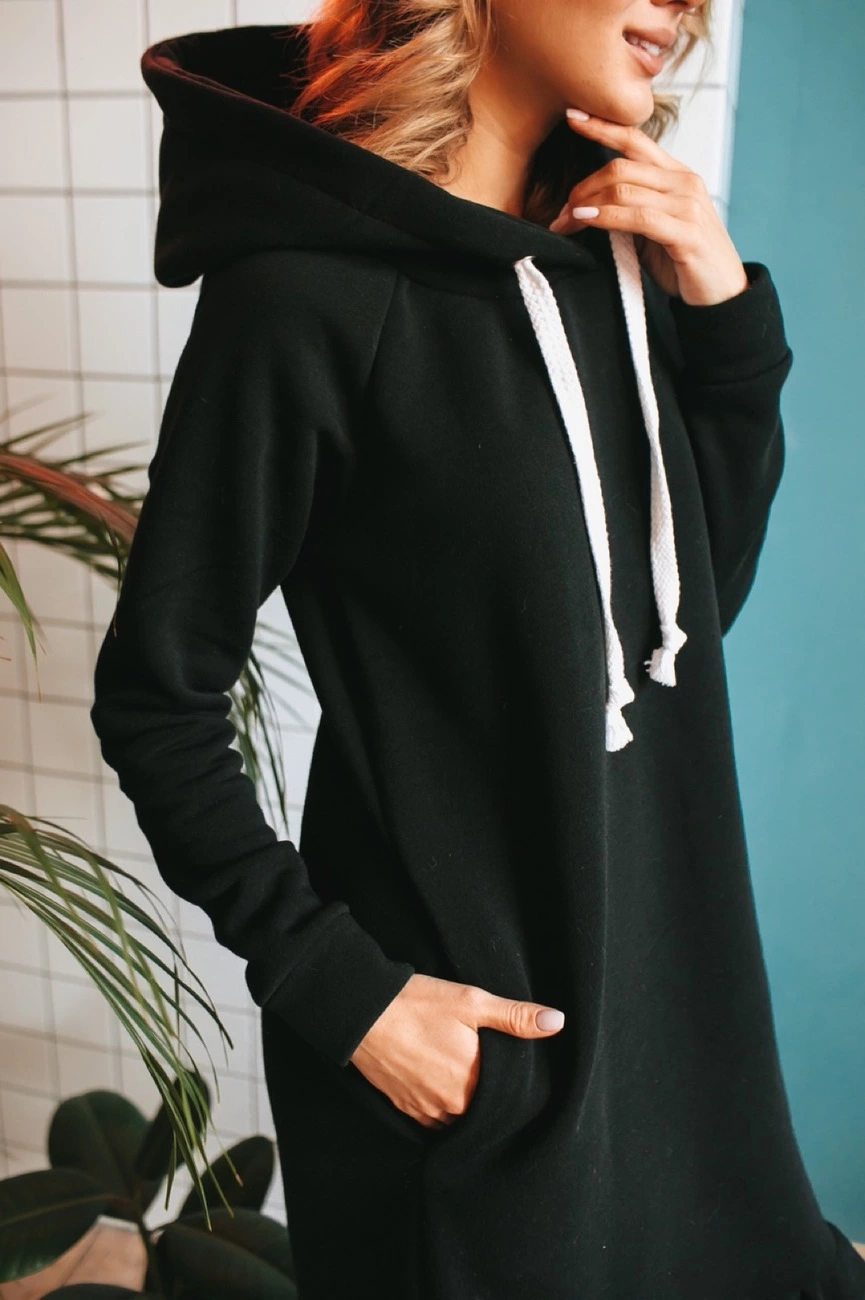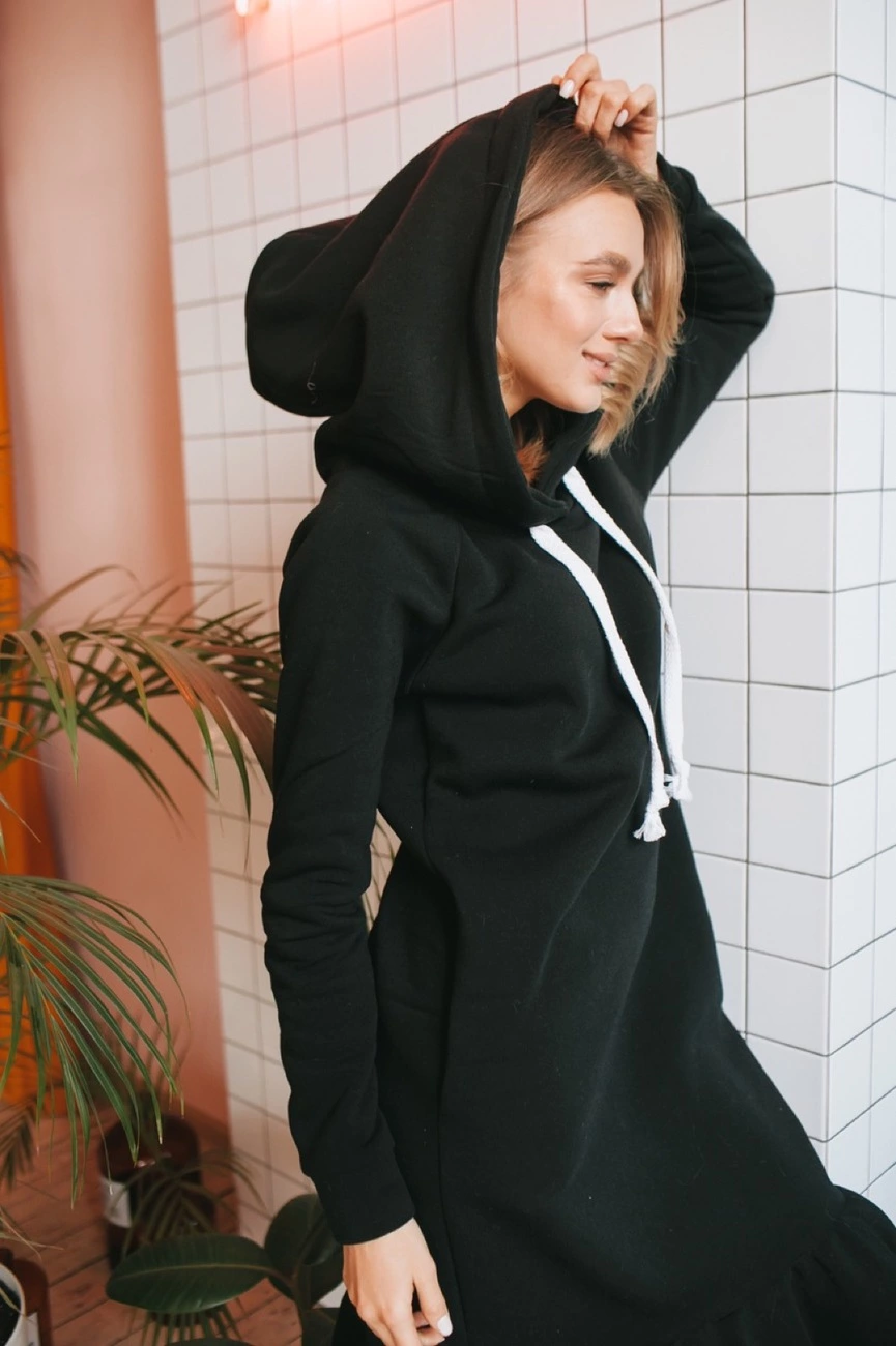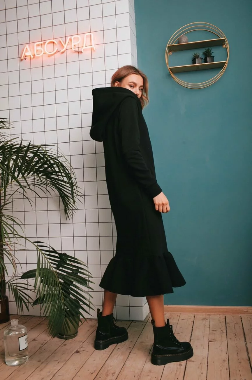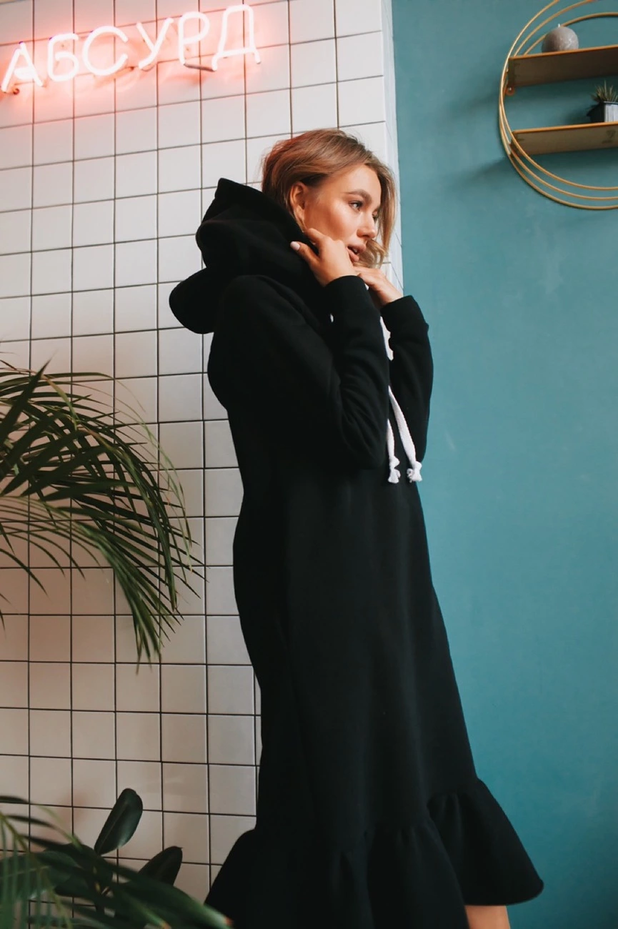 Платье свободного кроя ,рукав реглан,капюшон двойной