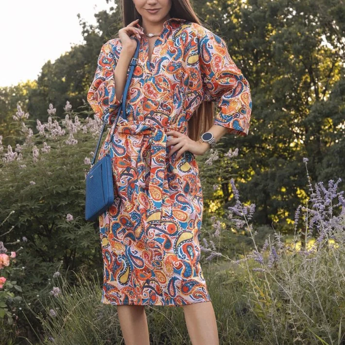 Сукня-сорочка прямого крою, виконана з натуральної бавовняної
