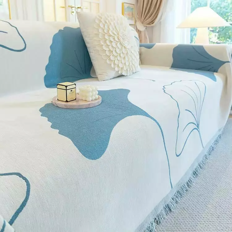 синіми листям на білому тлі, доповнено акуратною бахромою по краях.