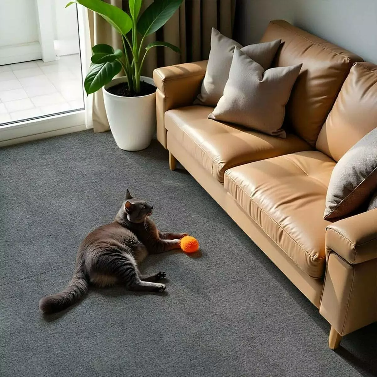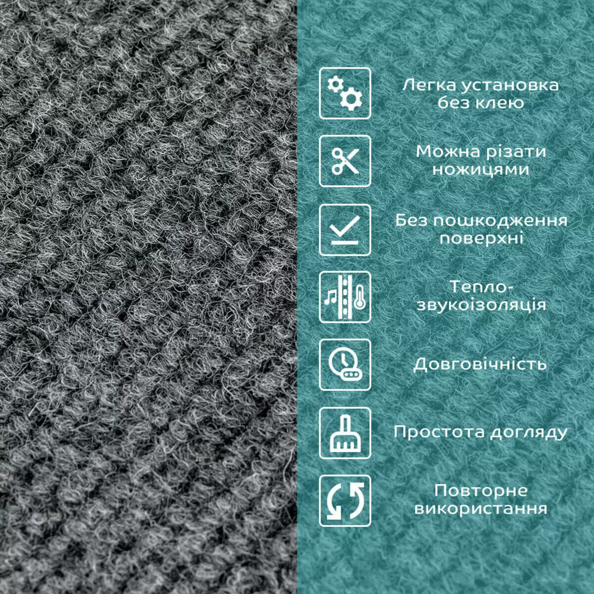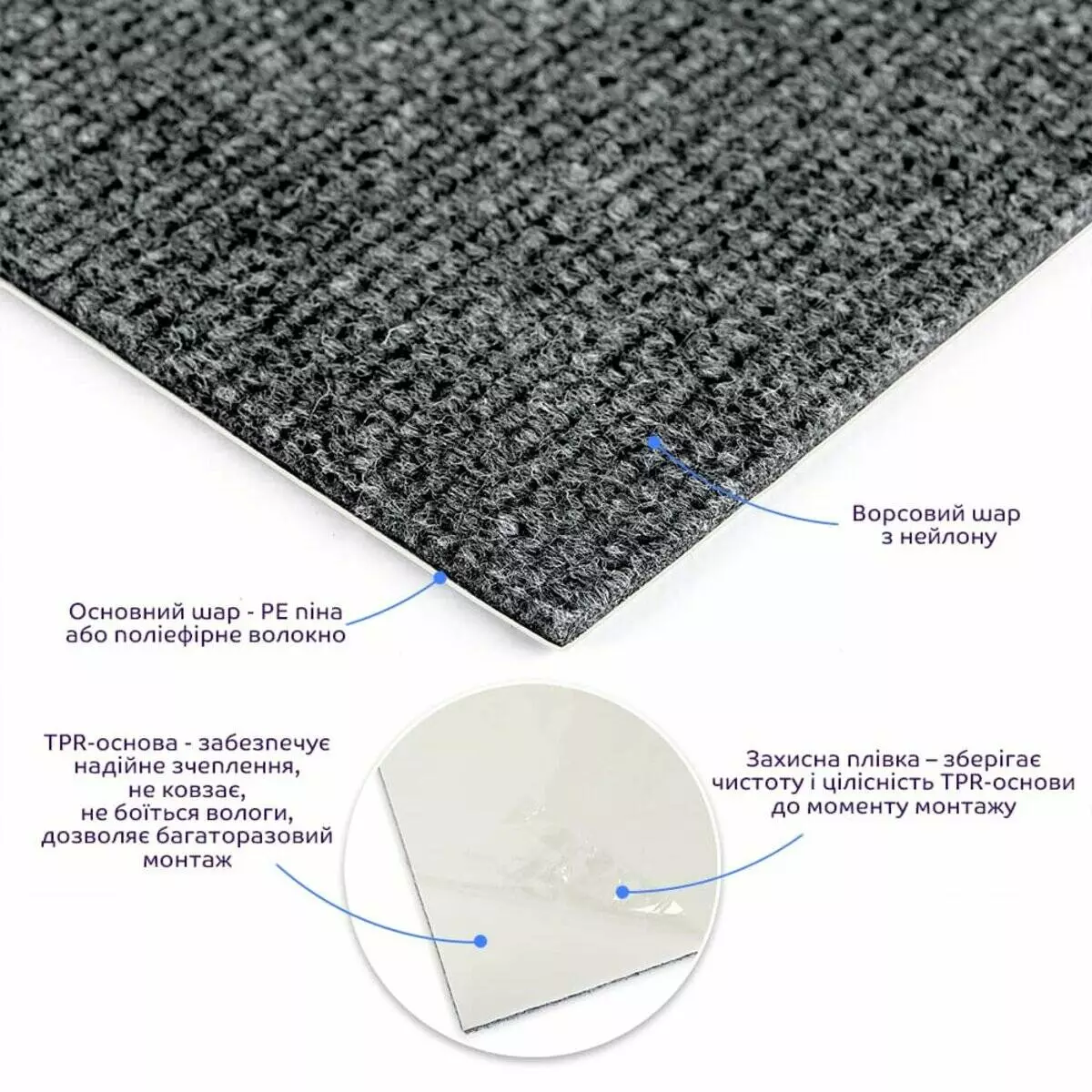- Зніміть захисну плівку та щільно притисніть ковролінову плитку