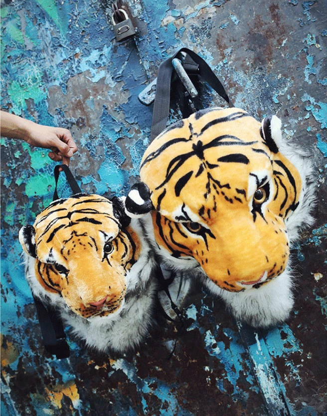 Модний плюшевий рюкзак 3D у вигляді голови тигра RESTEQ.
