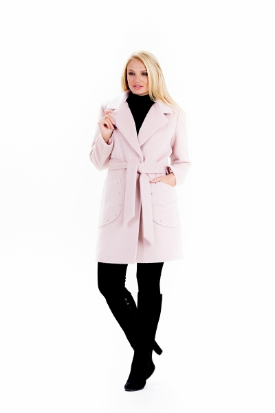 Пальто женское весеннее с поясом "ALPAKA" (цвет розовый)