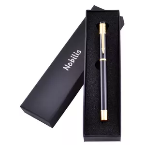 Стильная подарочная ручка Nobillis — отличный выбор для делового человека, коллеги или партнера. Корпус выполнен в классическом черном цвете с золотыми декоративными элементами, что подчеркивает элегантность и статус.