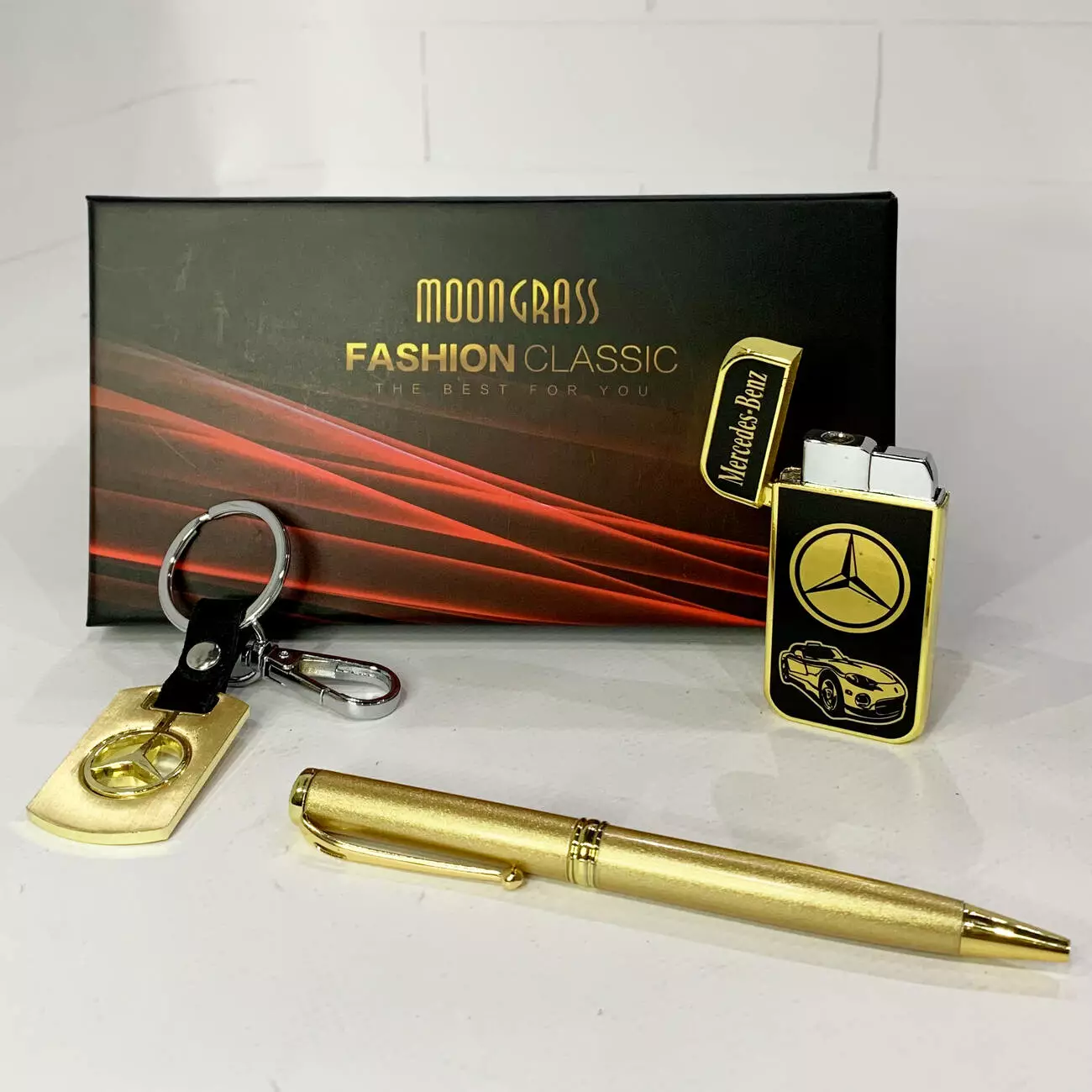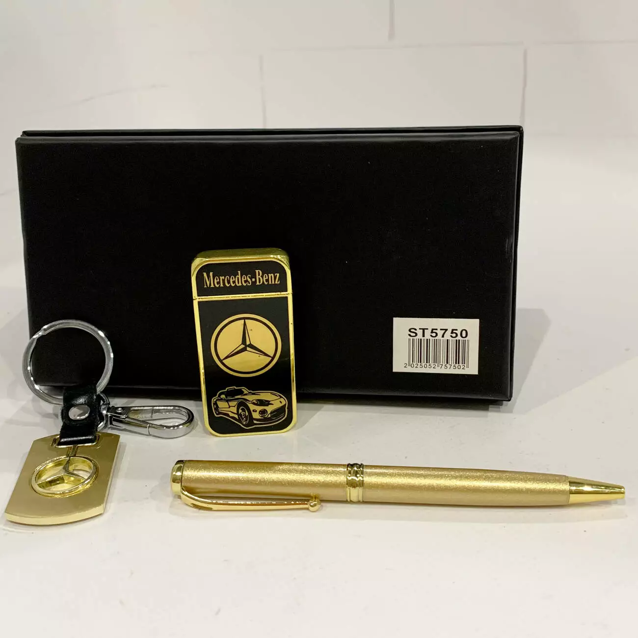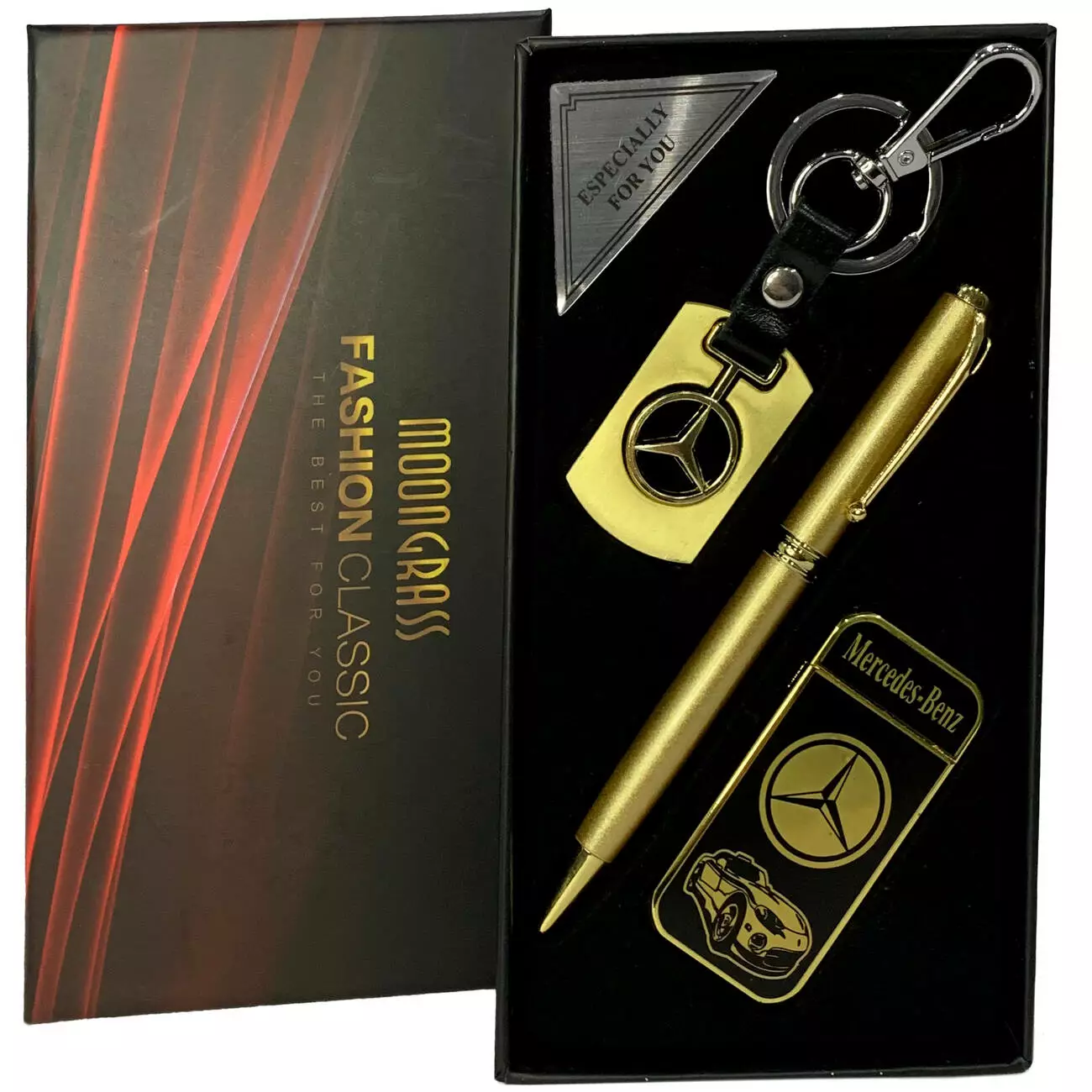 Стильный мужской аксессуарный комплект, созданный для поклонников легендарного бренда Mercedes-Benz. Все элементы выполнены в едином дизайне и упакованы в элегантную подарочную коробку, что делает набор отличным выбором для подарка.