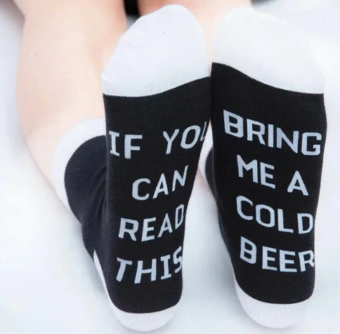 Подарункові шкарпетки RESTEQ з написом ("If you can read this - bring me a cold beer"), що перекладається так - ("якщо ти можеш це прочитати - принеси мені холодне пиво")