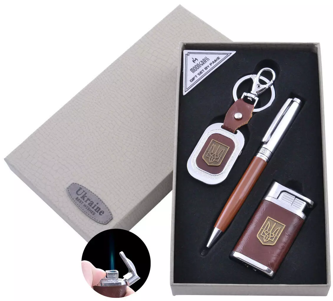Подарочный набор брелок/ручка/зажигалка Украина (Острое пламя) ST-5623