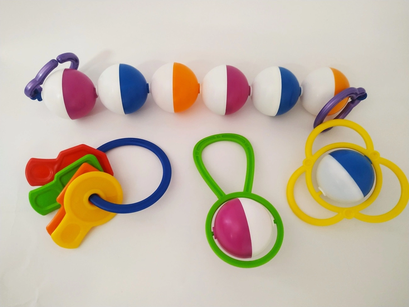 Комплектація: 3 брязкальця ,розтяжка на люльку Вік : від 3 місяців Виготовлене з матеріалів,які не викликають алергічних реакцій. Перші іграшки, за допомогою яких новонароджений малюк пізнає світ - звичайно ж, брязкальця. Яскравість, незвичність форм і фактура брязкальця, допомагають розвивати дрібну моторику і тактильні відчуття новонародженого. Вчать фокусувати погляд і сприймати різні звуки і кольори.