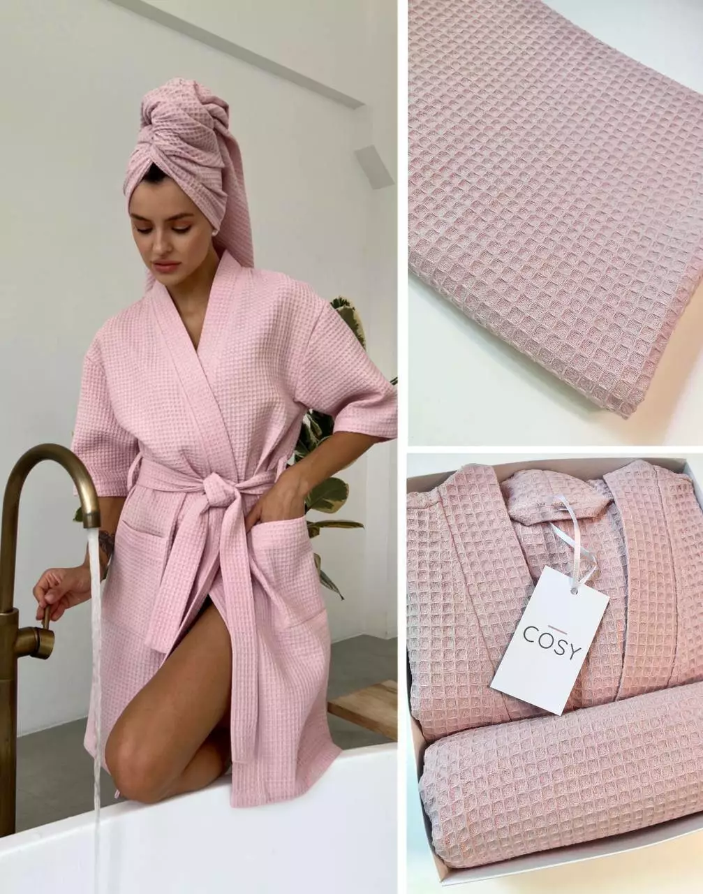 Подарунковий набір складається з халата та рушника в подарунковій коробці. Халат кімоно+ рушник банний 70*140