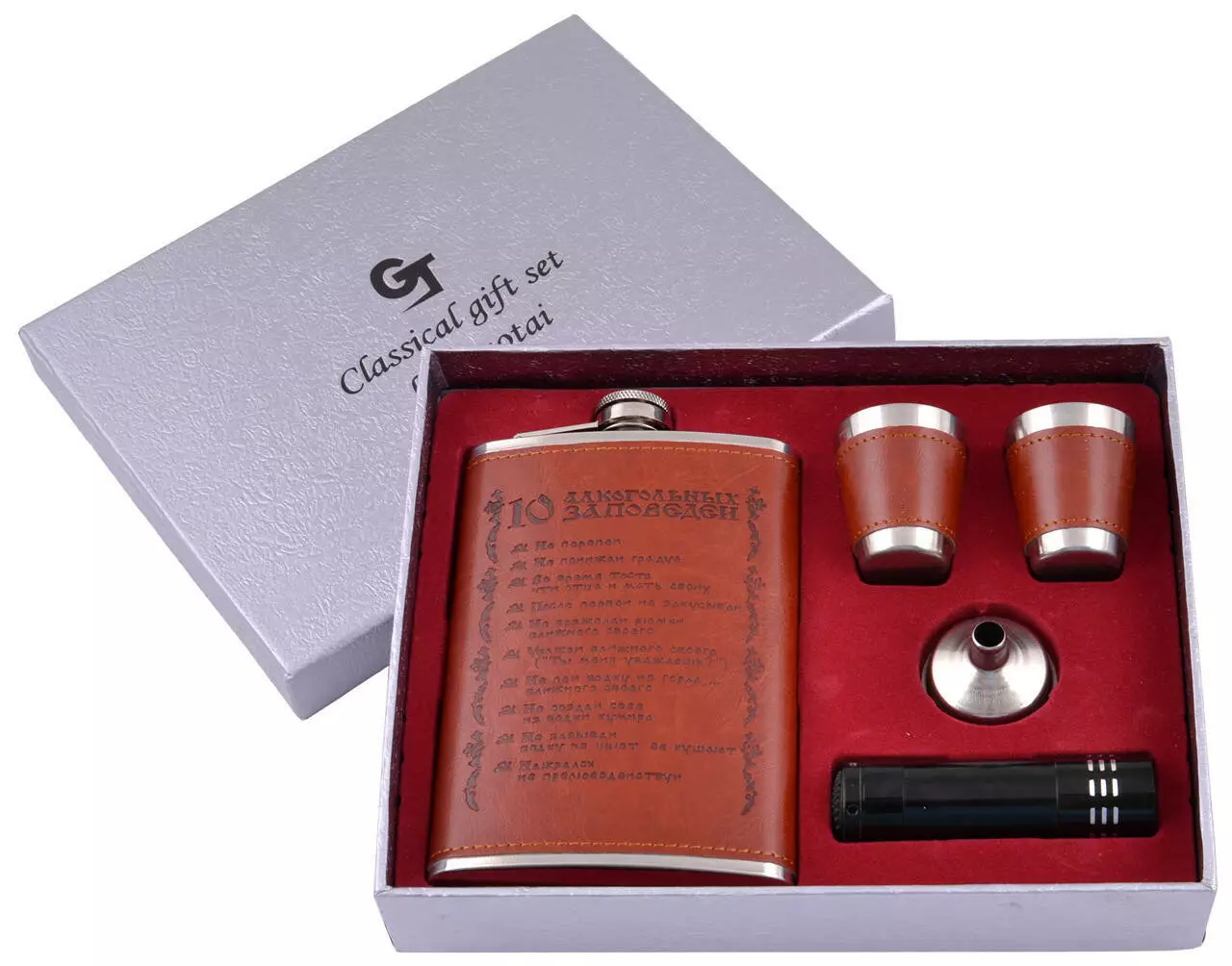 Подарочный набор Фляга/Рюмки/Лейка/Фонарик №GT-313