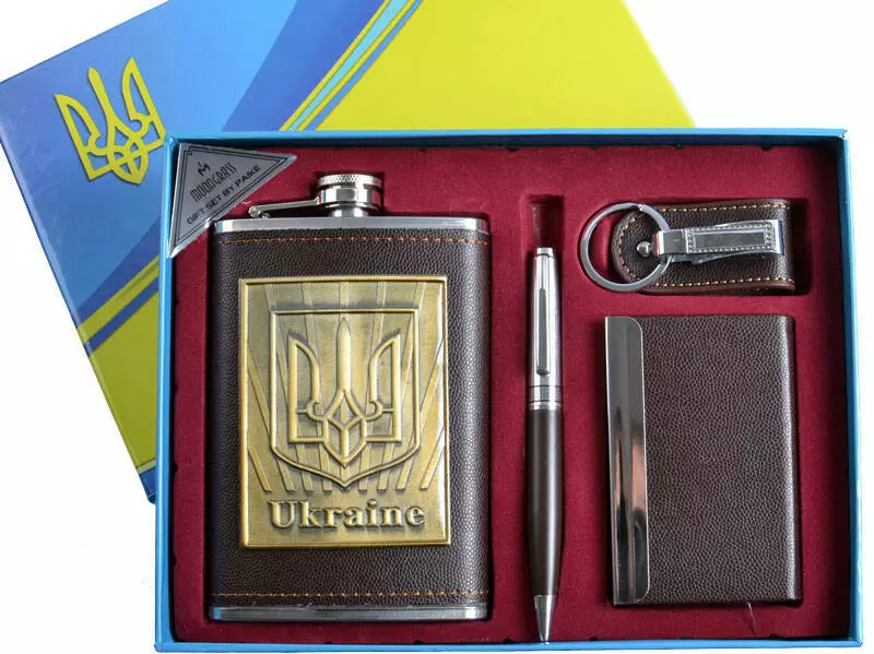 Подарочный набор с Украинской символикой "Moongrass" 4в1 Фляга, Брелок, Ручка, Визитница DJH-1092