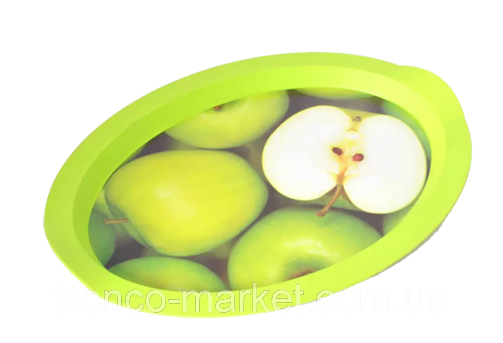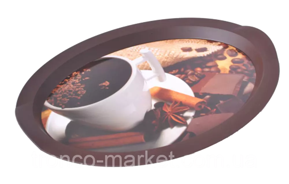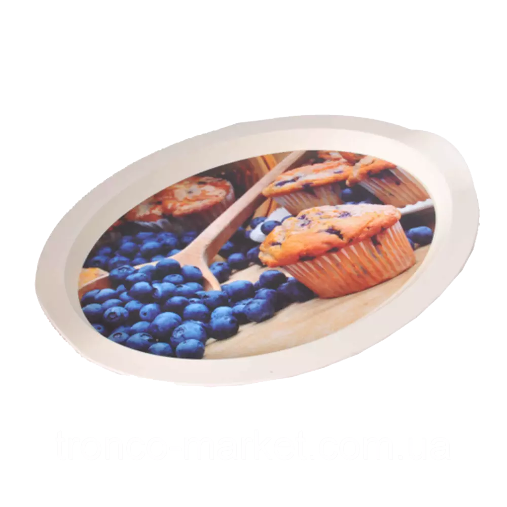 Поднос овальный с декором 47*35*4см., Артикул 167055, параметры изделия : линейные размеры ,мм : 470 х 350 х 35, объем -; кол-во в упаковке: 10 шт. Цвета в ассортименте :Кава,Мафін,Цитрус,Яблуко.
