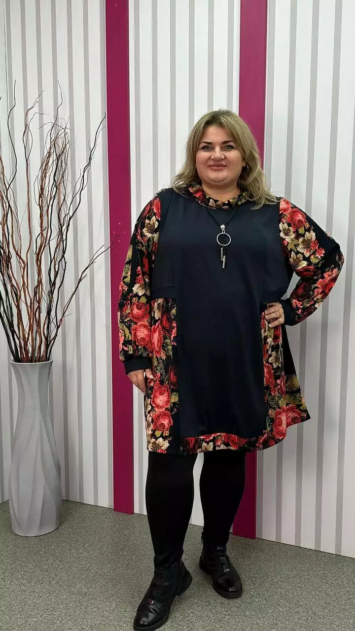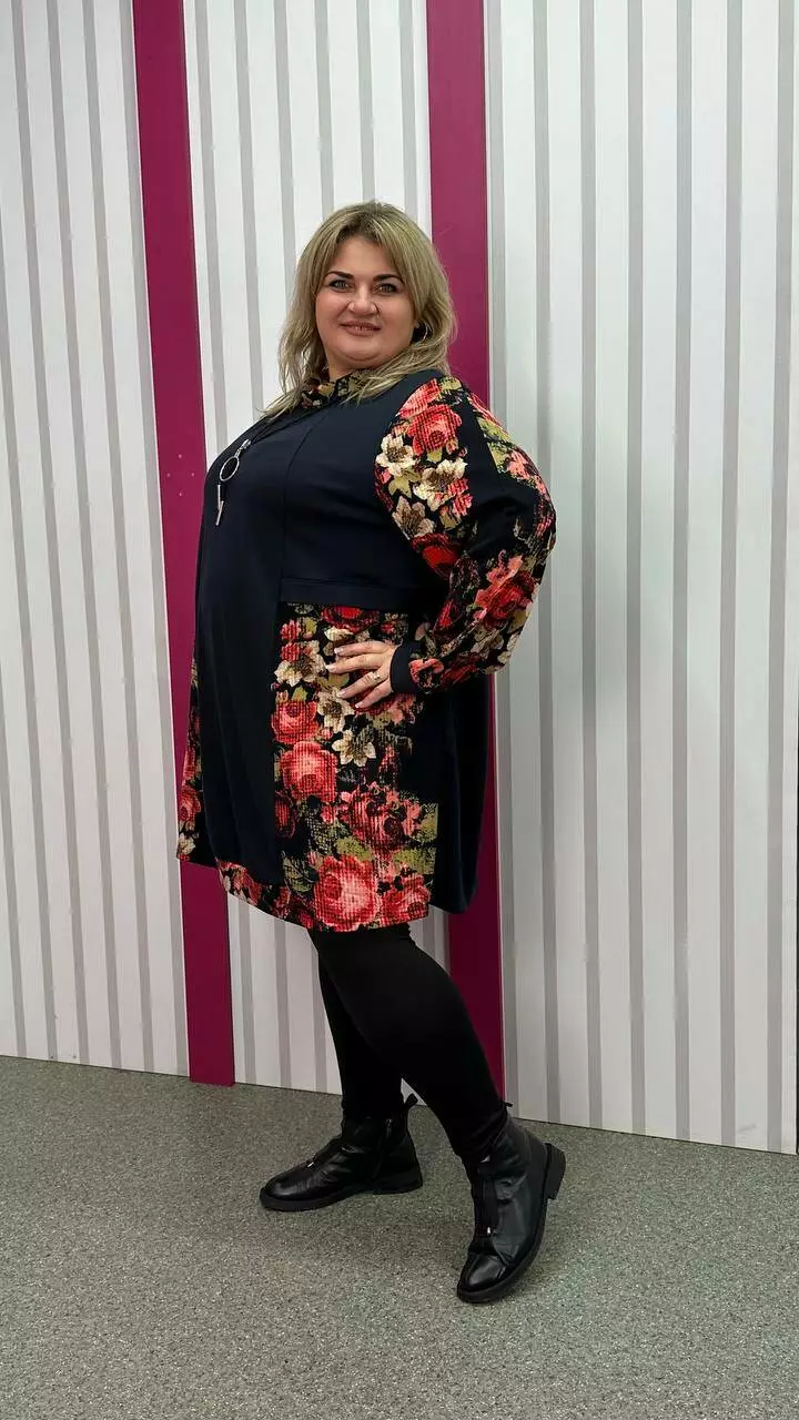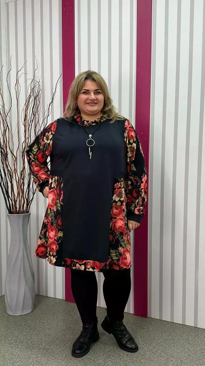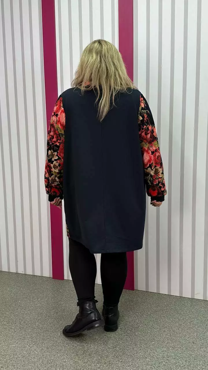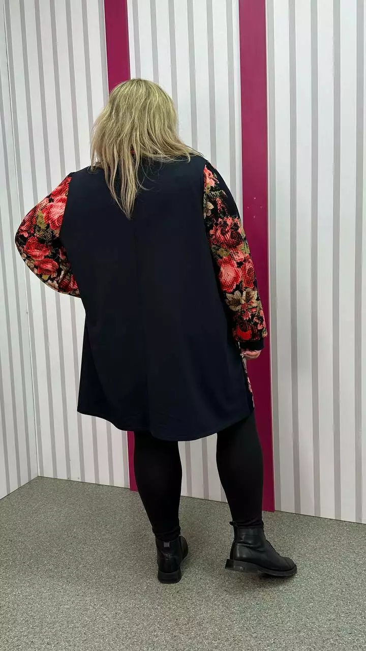 Комбінована туніка з двонитки, вставки з ангори, трапеція