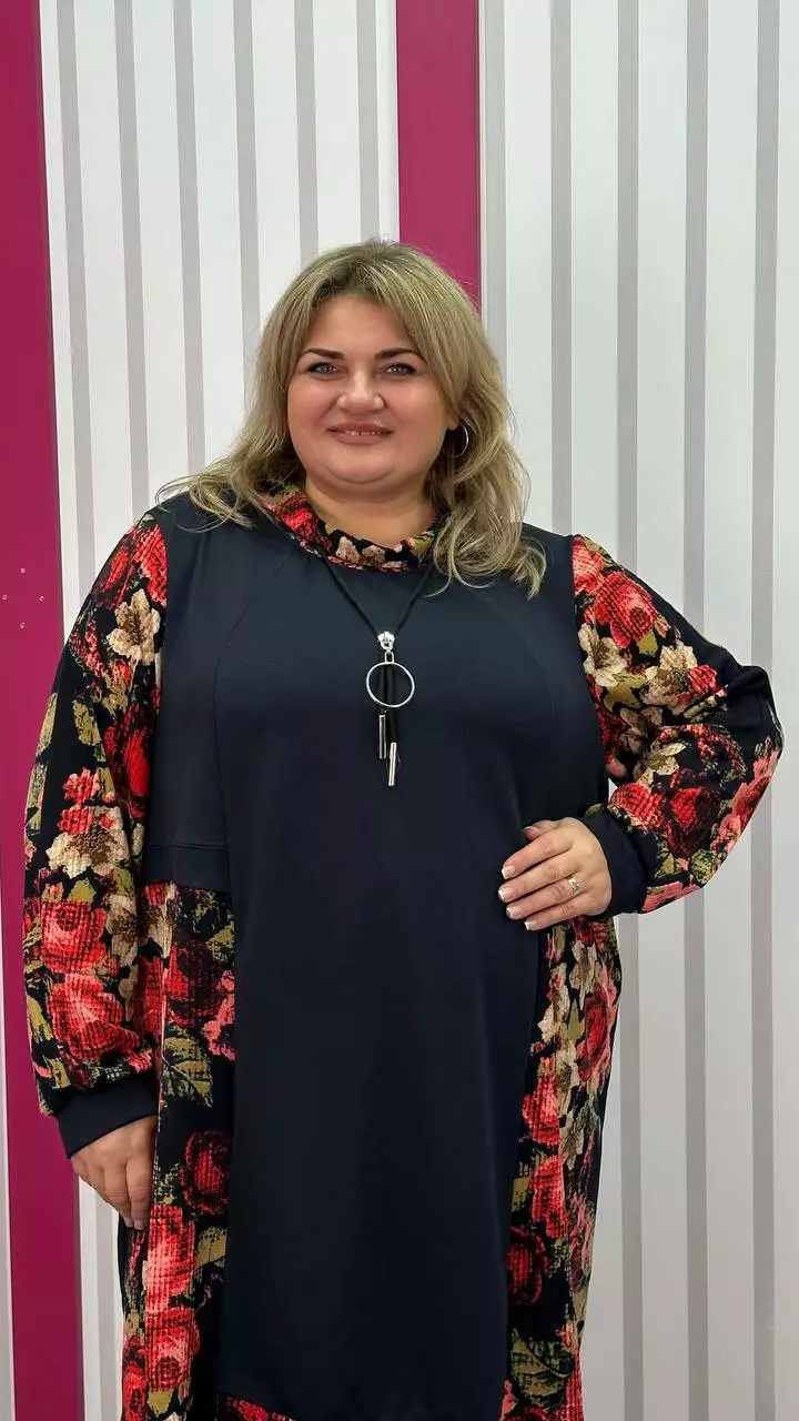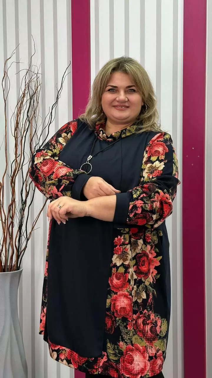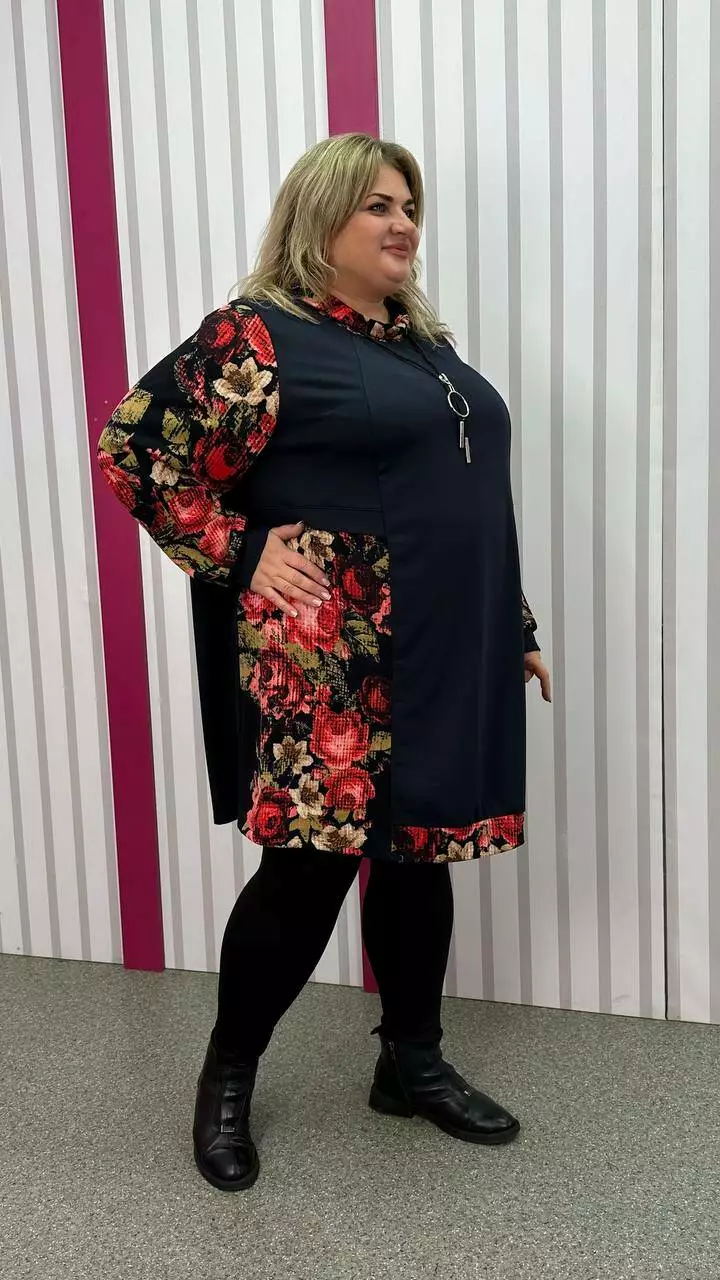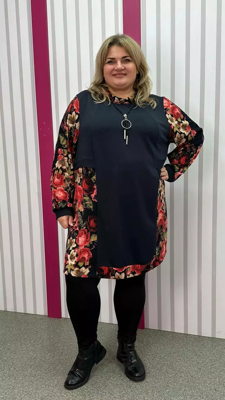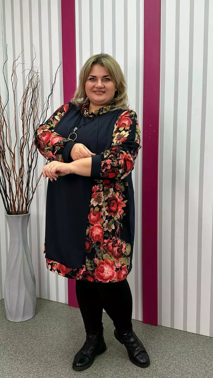 Комбінована туніка з двонитки, вставки з ангори, трапеція
