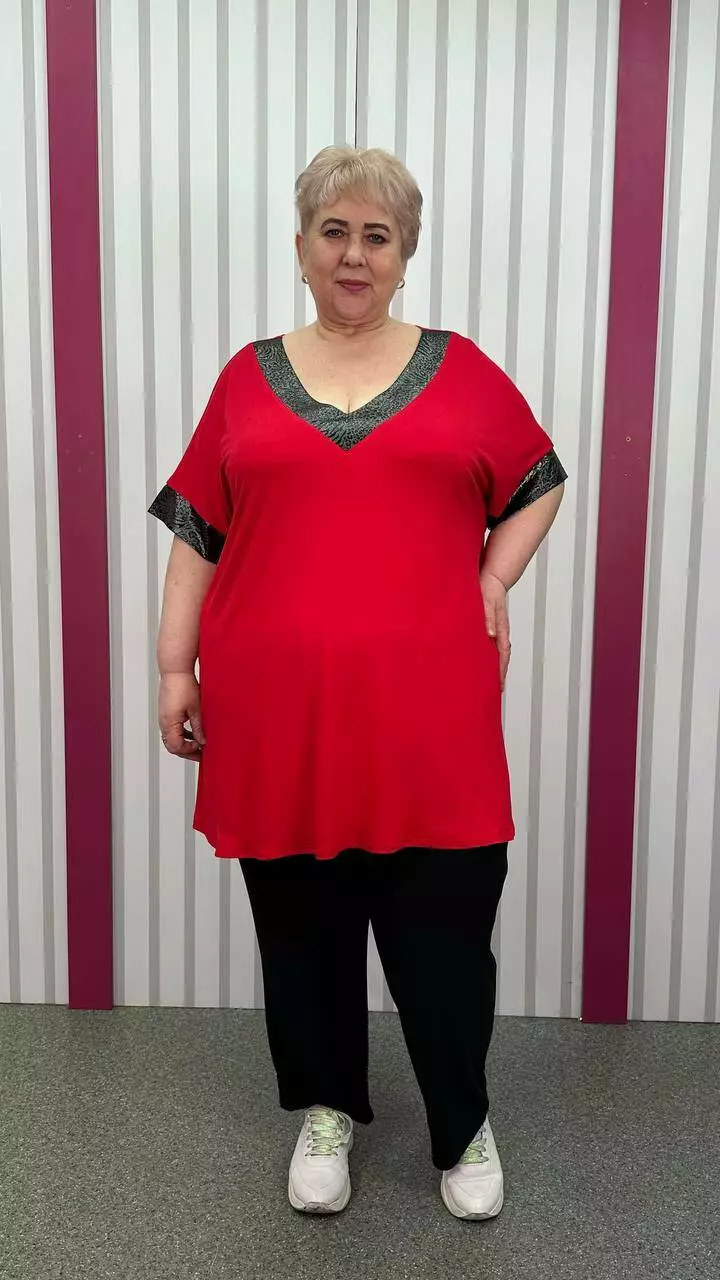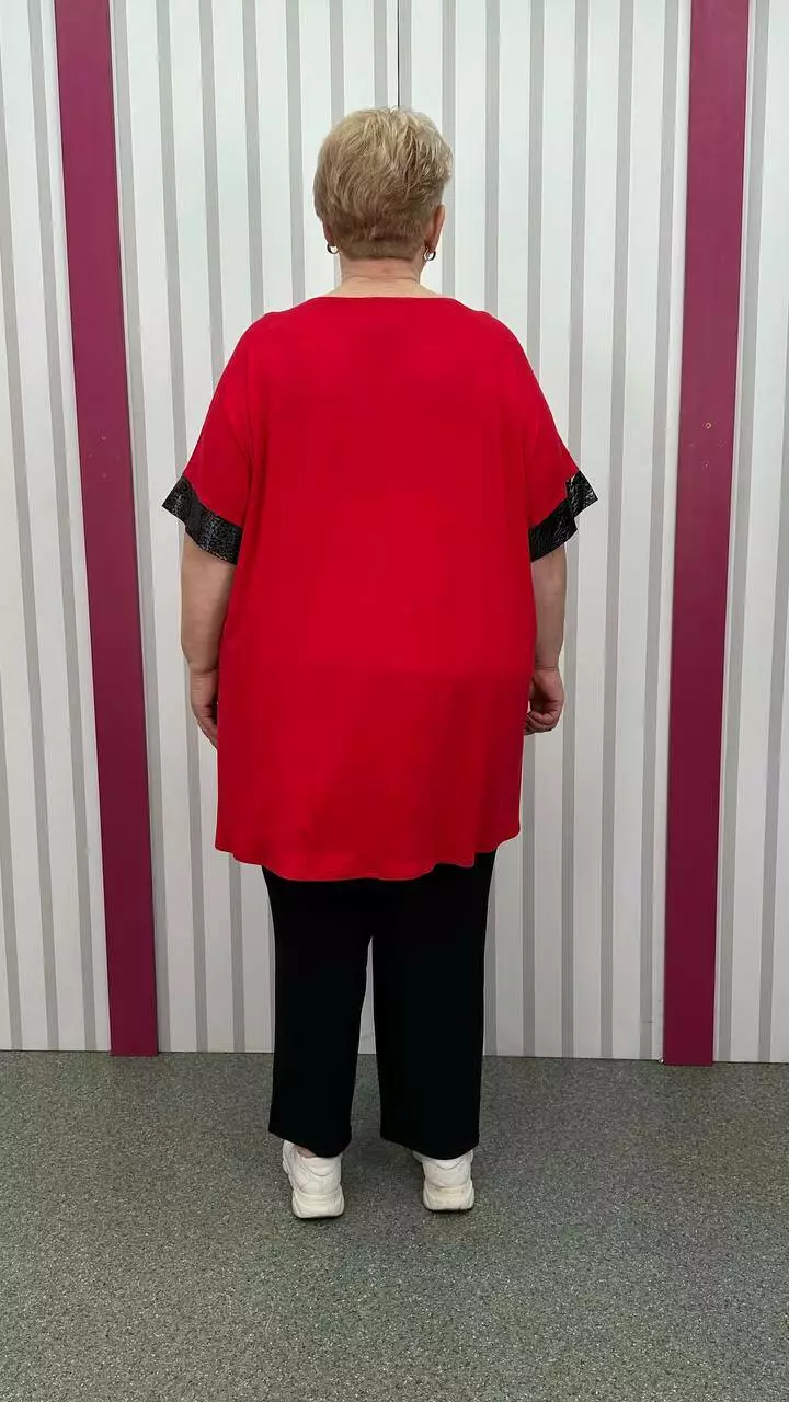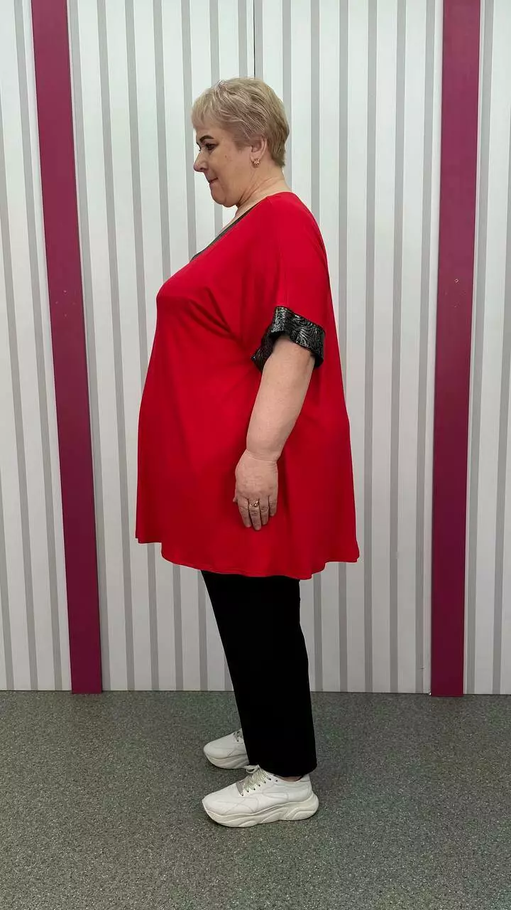 Подовжена вільна футболка "Фенікс" червона срібло великого розміру 58-60 62-64 66-68 70-72 74-76