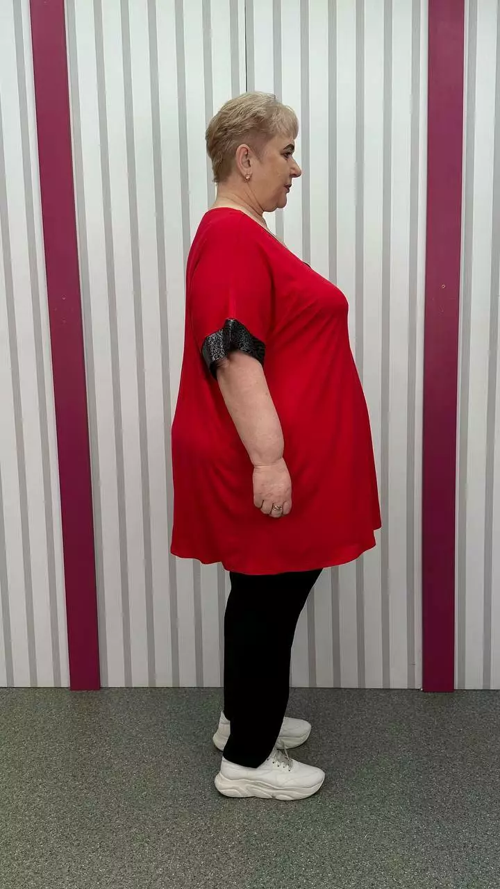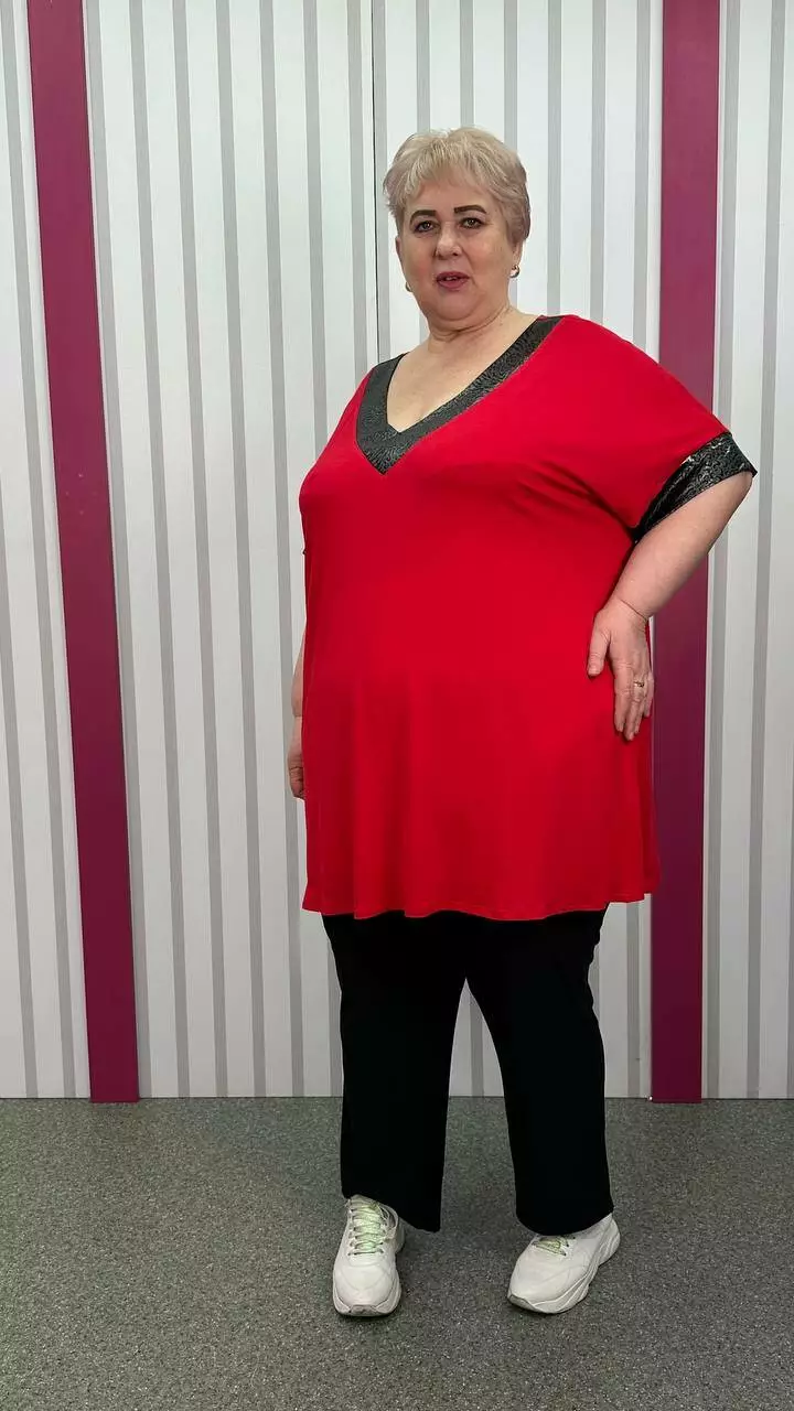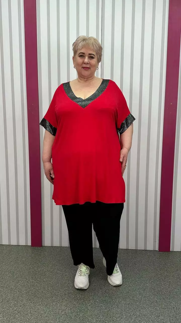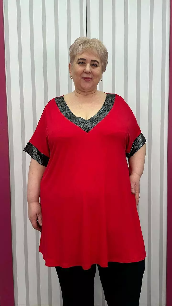Подовжена вільна футболка "Фенікс" червона срібло великого розміру 58-60 62-64 66-68 70-72 74-76