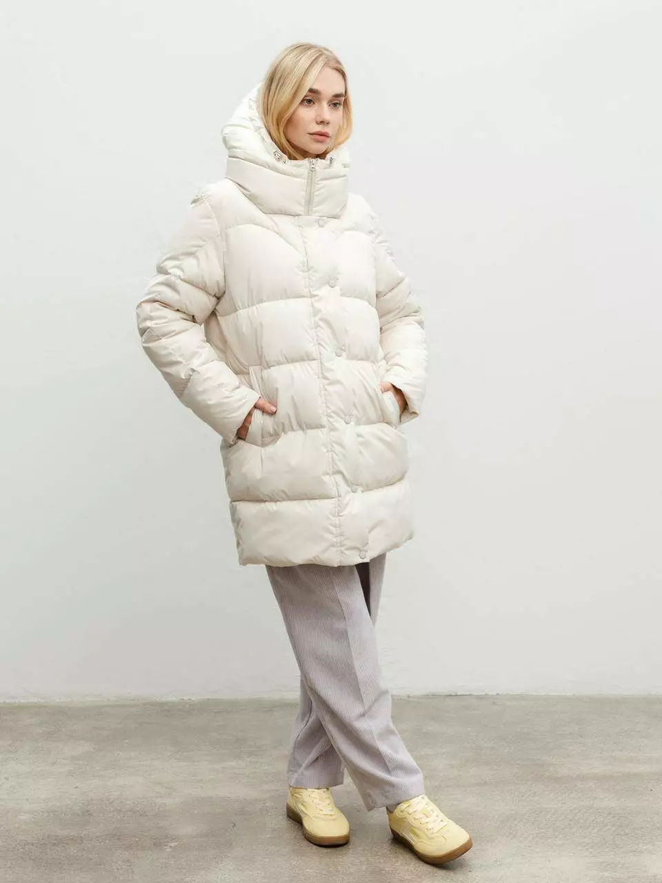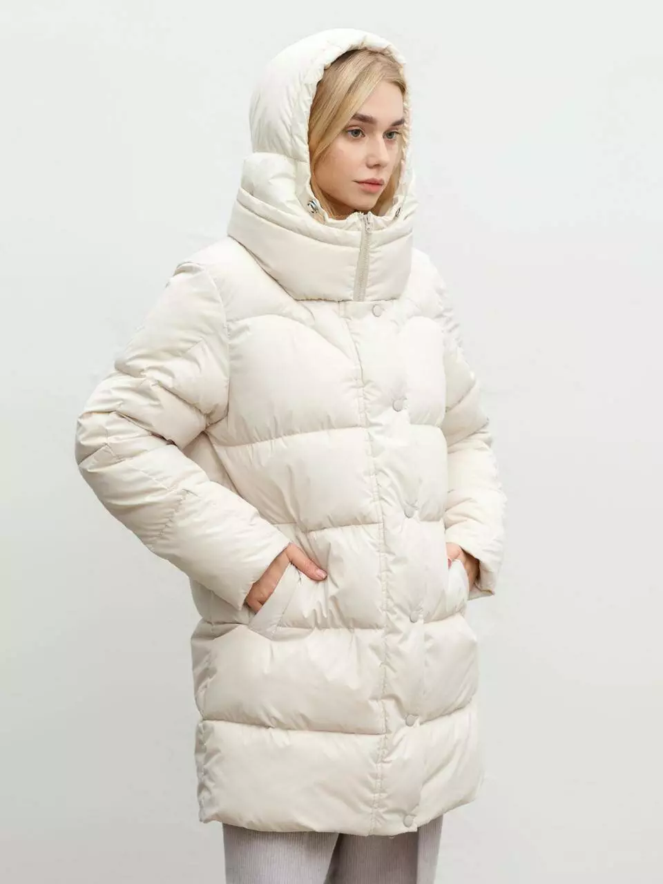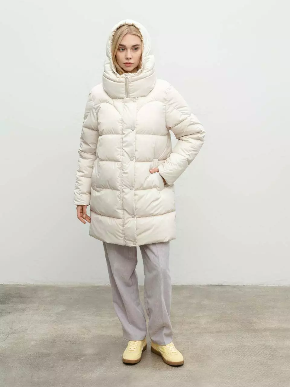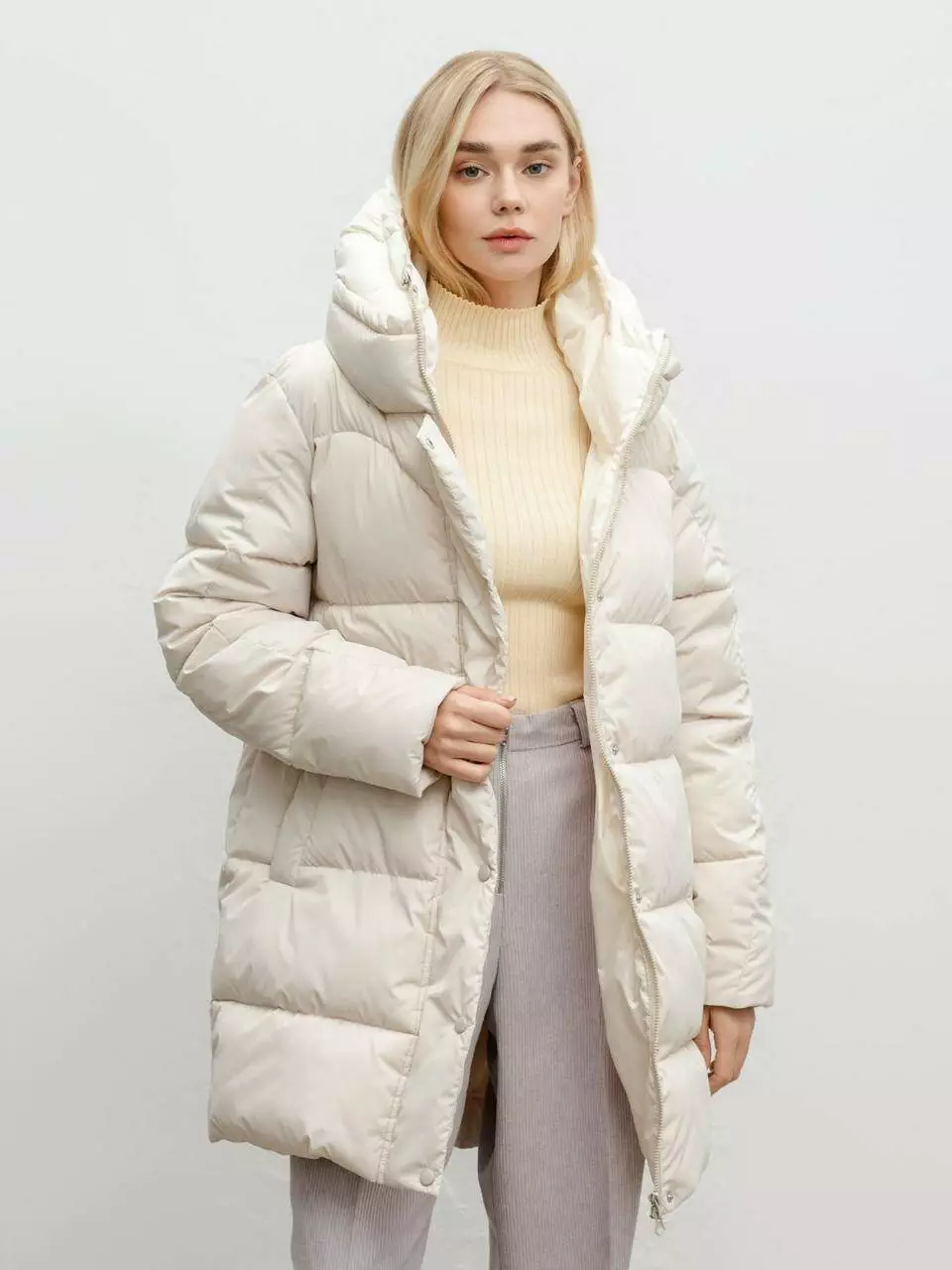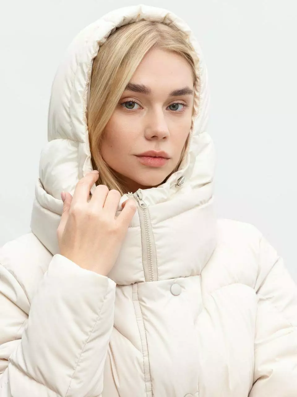 Елегантна подовжена зимова куртка у молочному кольорі, створена