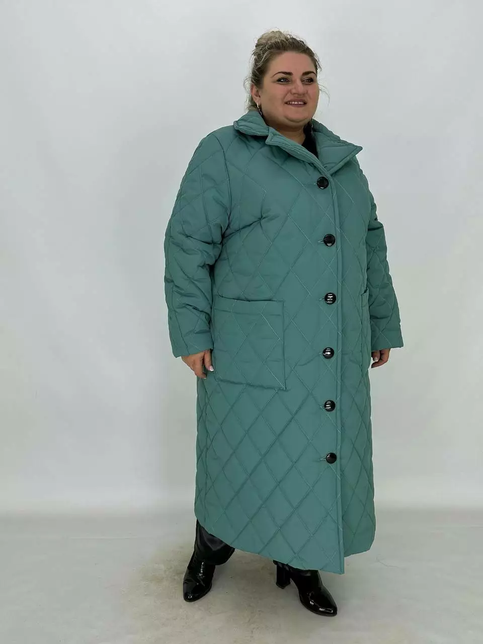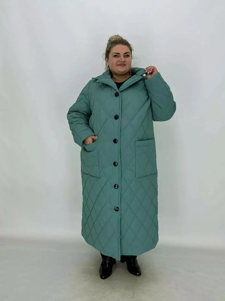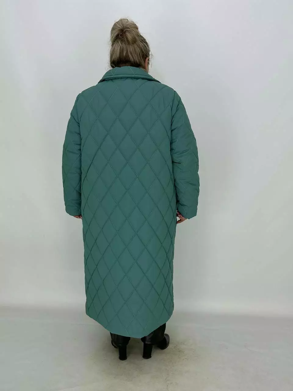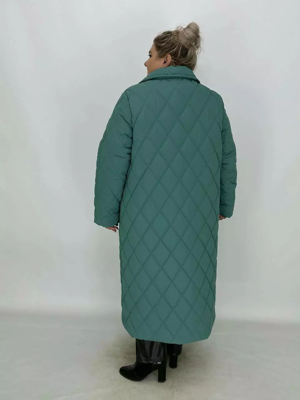 Подовжене стьобане пальто на гудзиках.