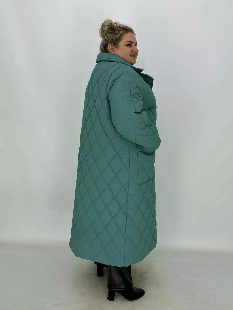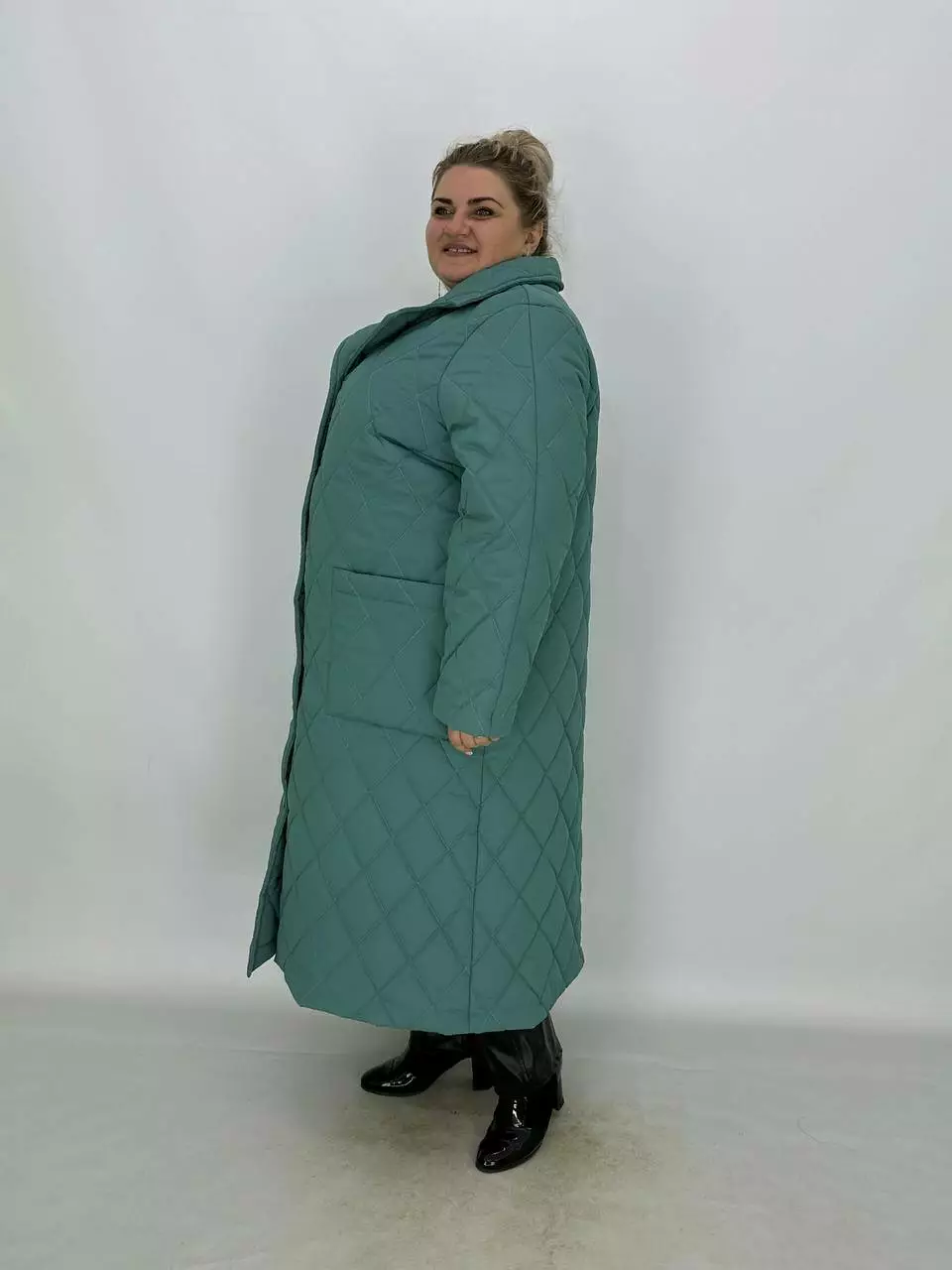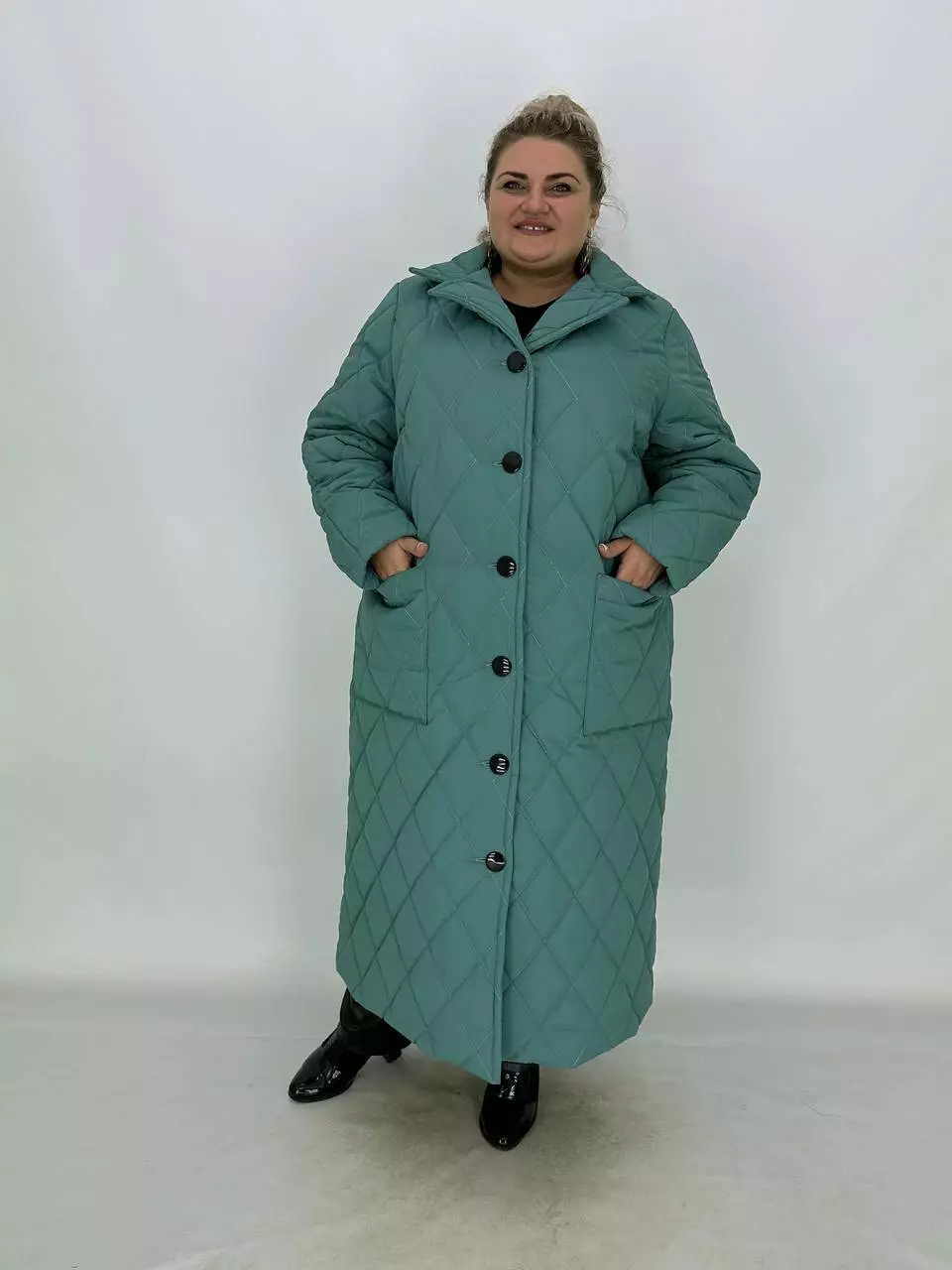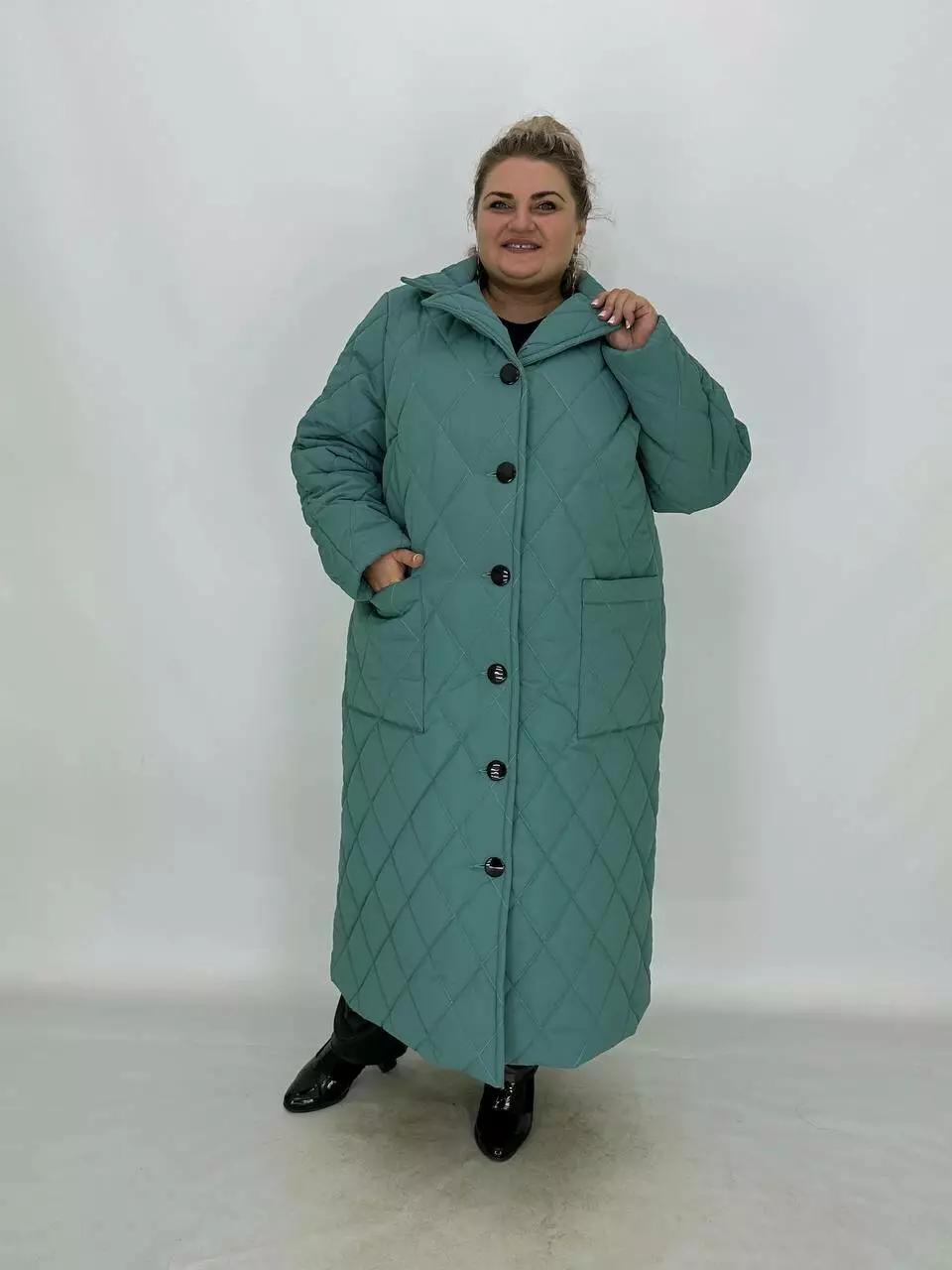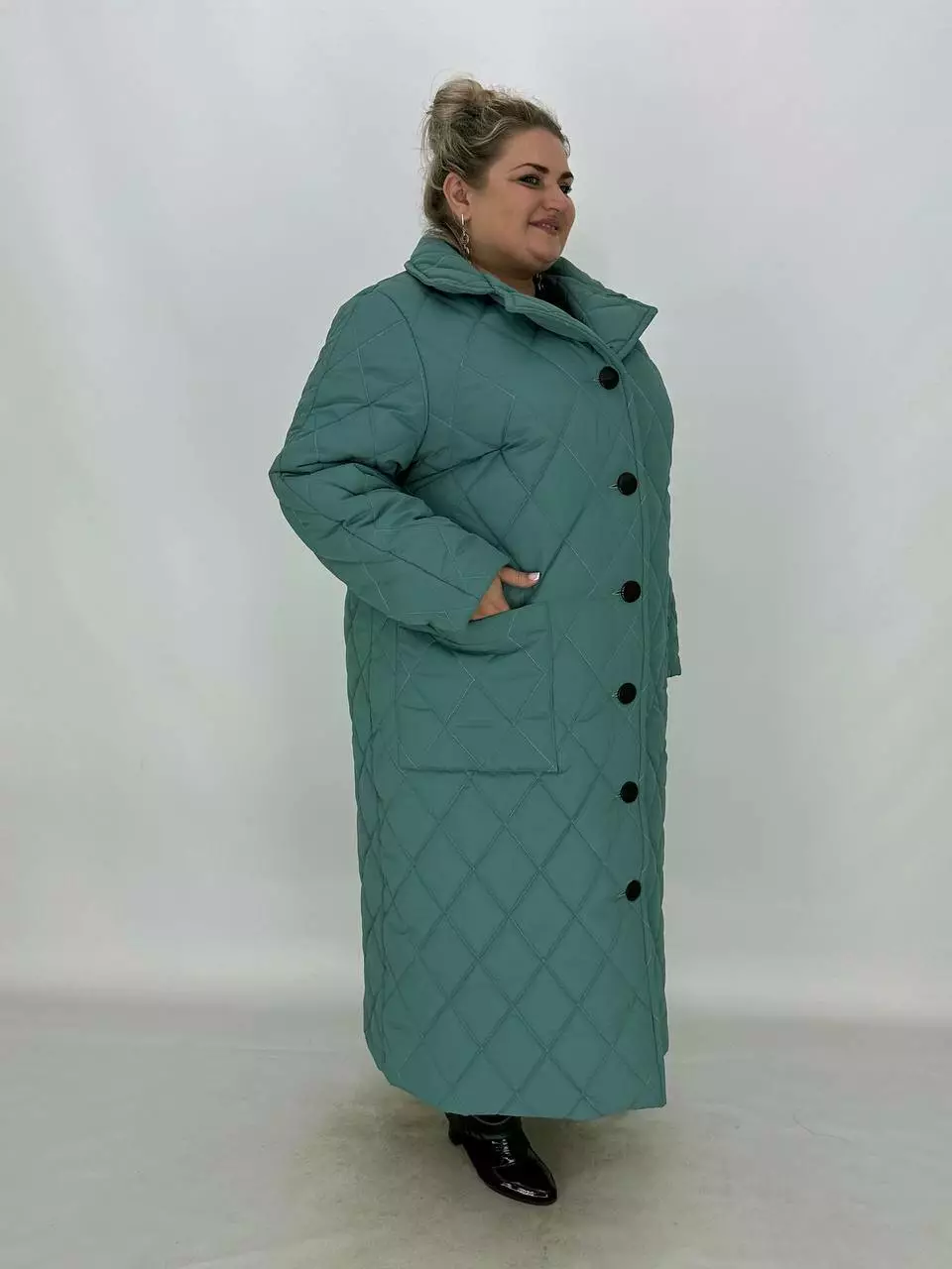 Подовжене стьобане пальто на гудзиках.