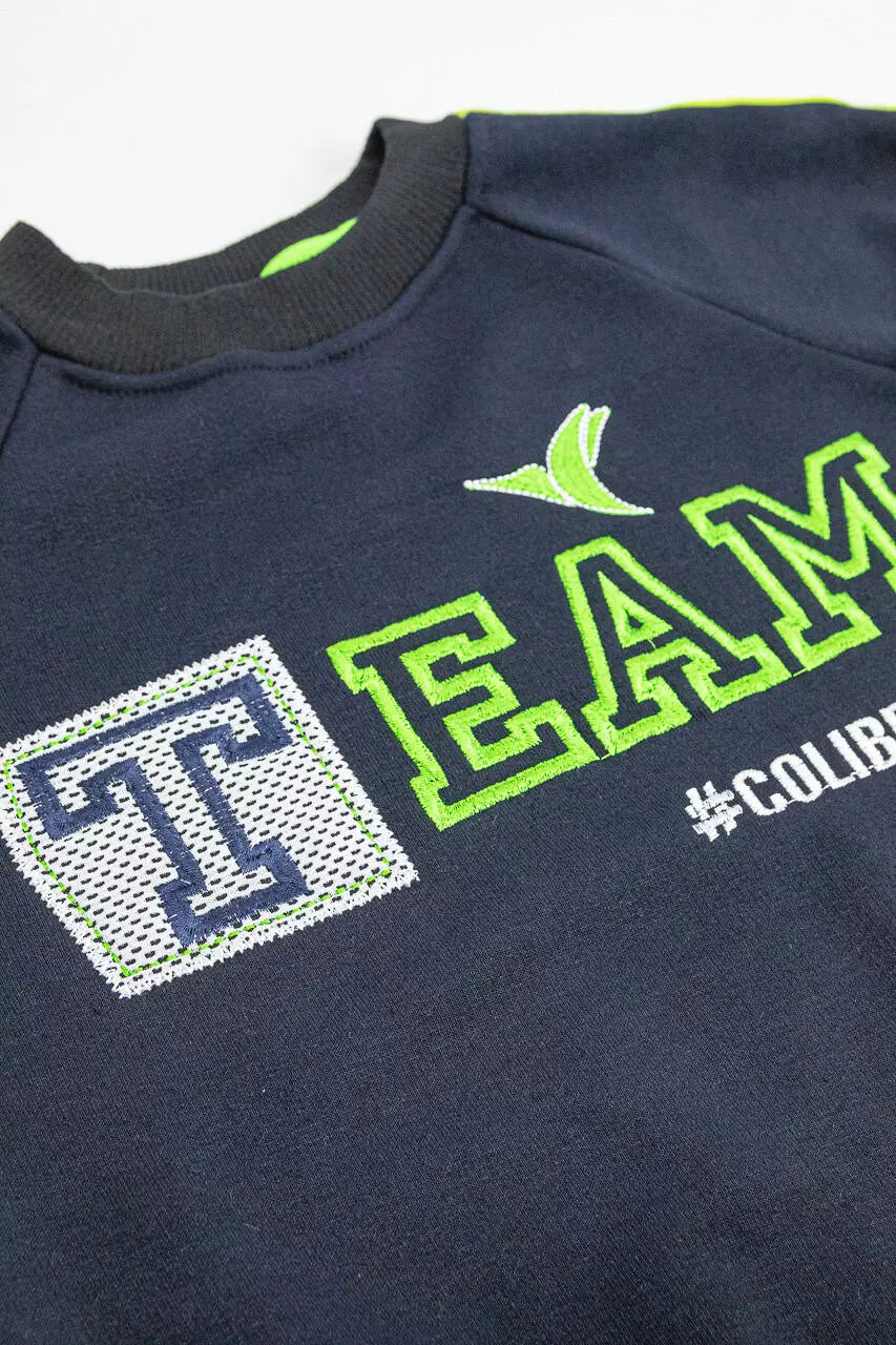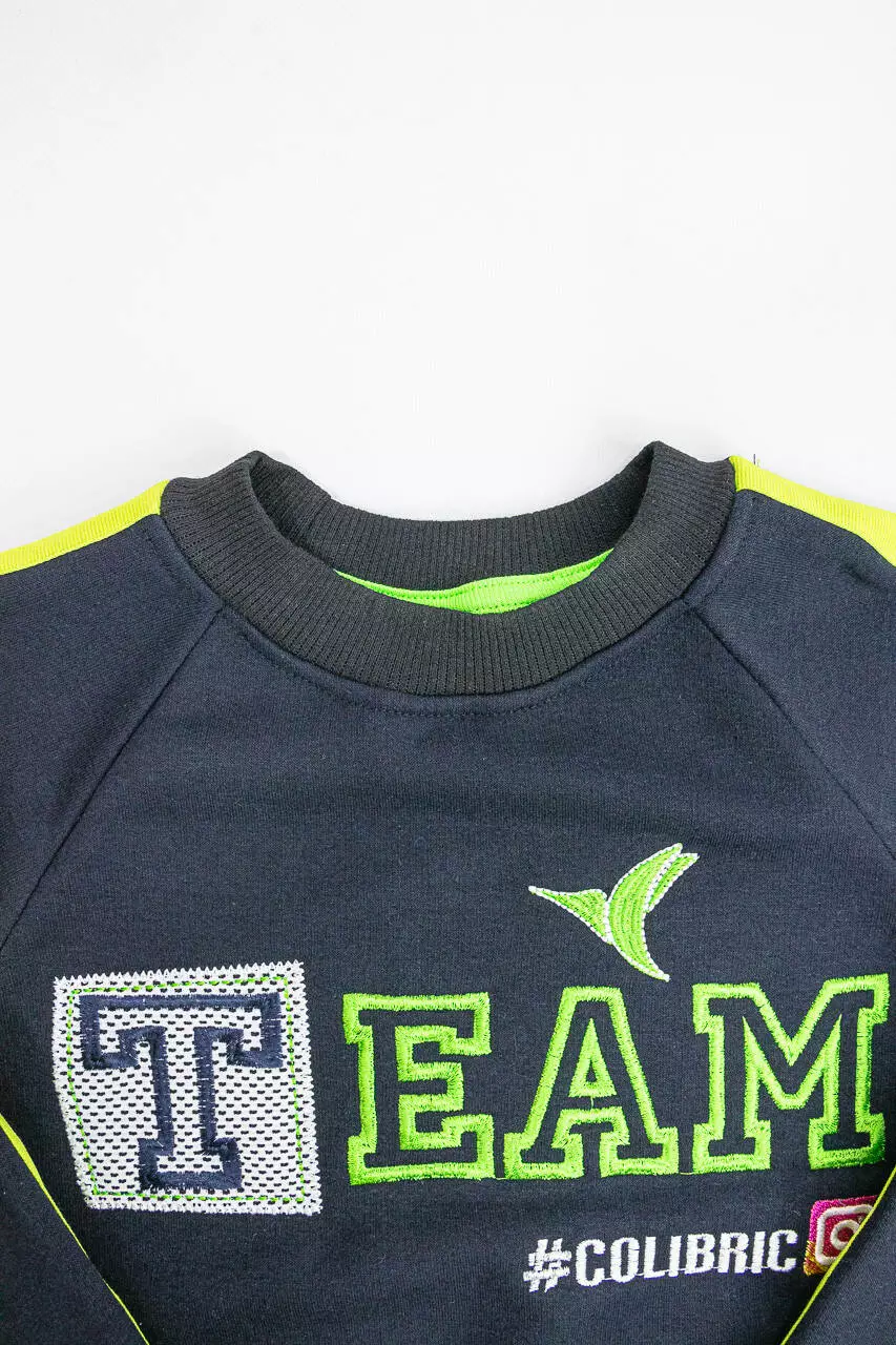 Джемпер имеет в рукавах и внизу трикотажный манжет. Нашивка.