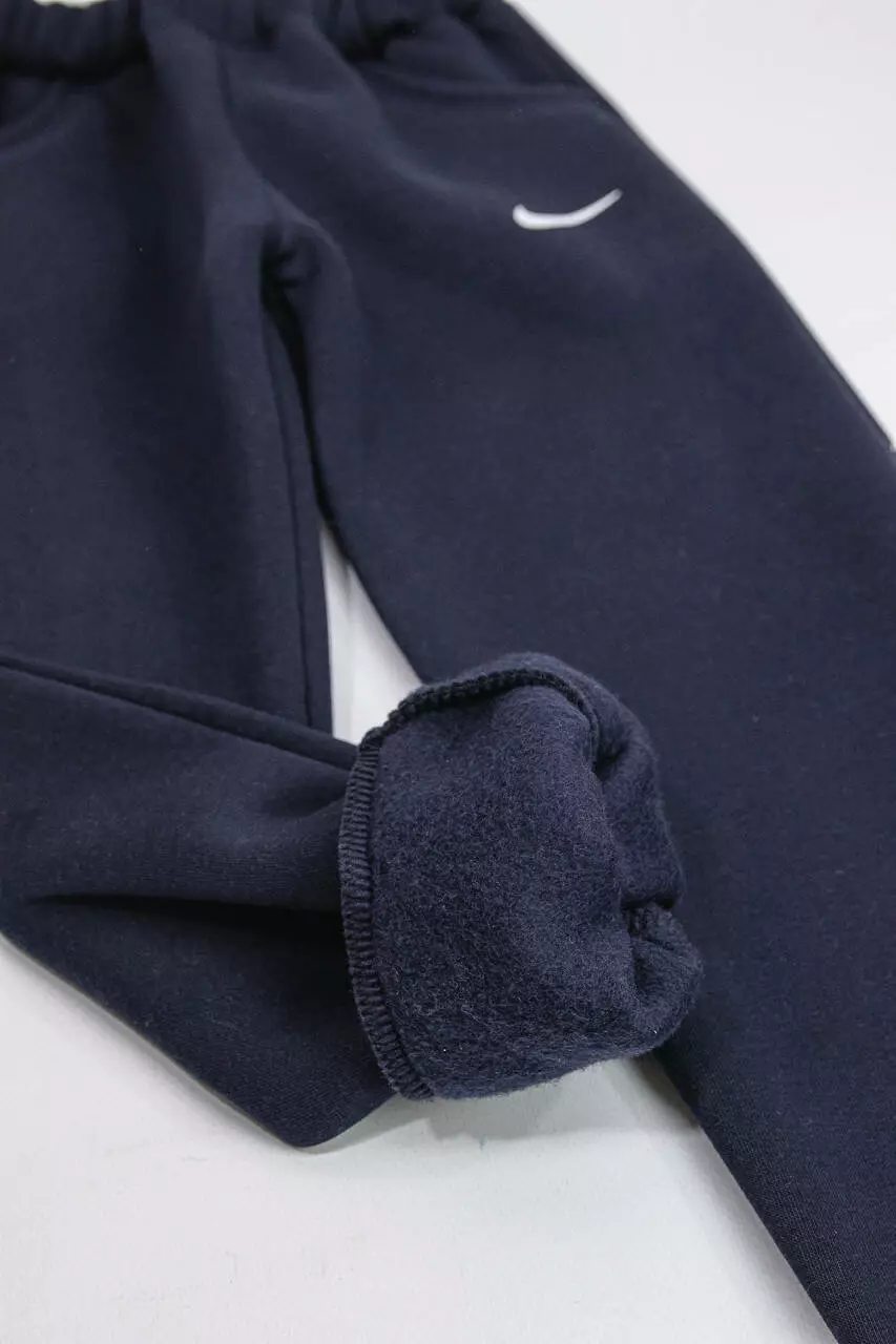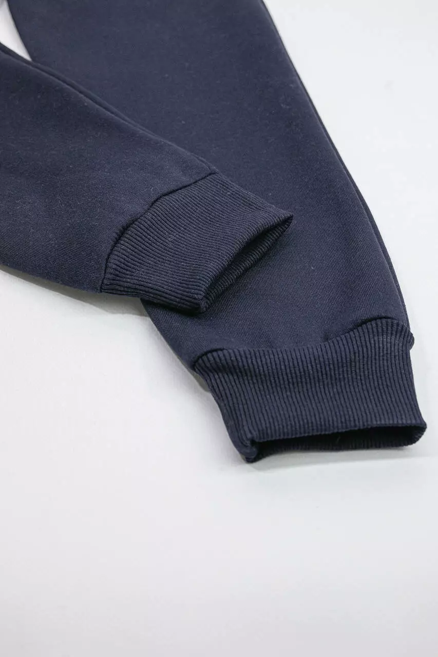 Брюки имеют карманы, а по низу украшены трикотажным манжетом.