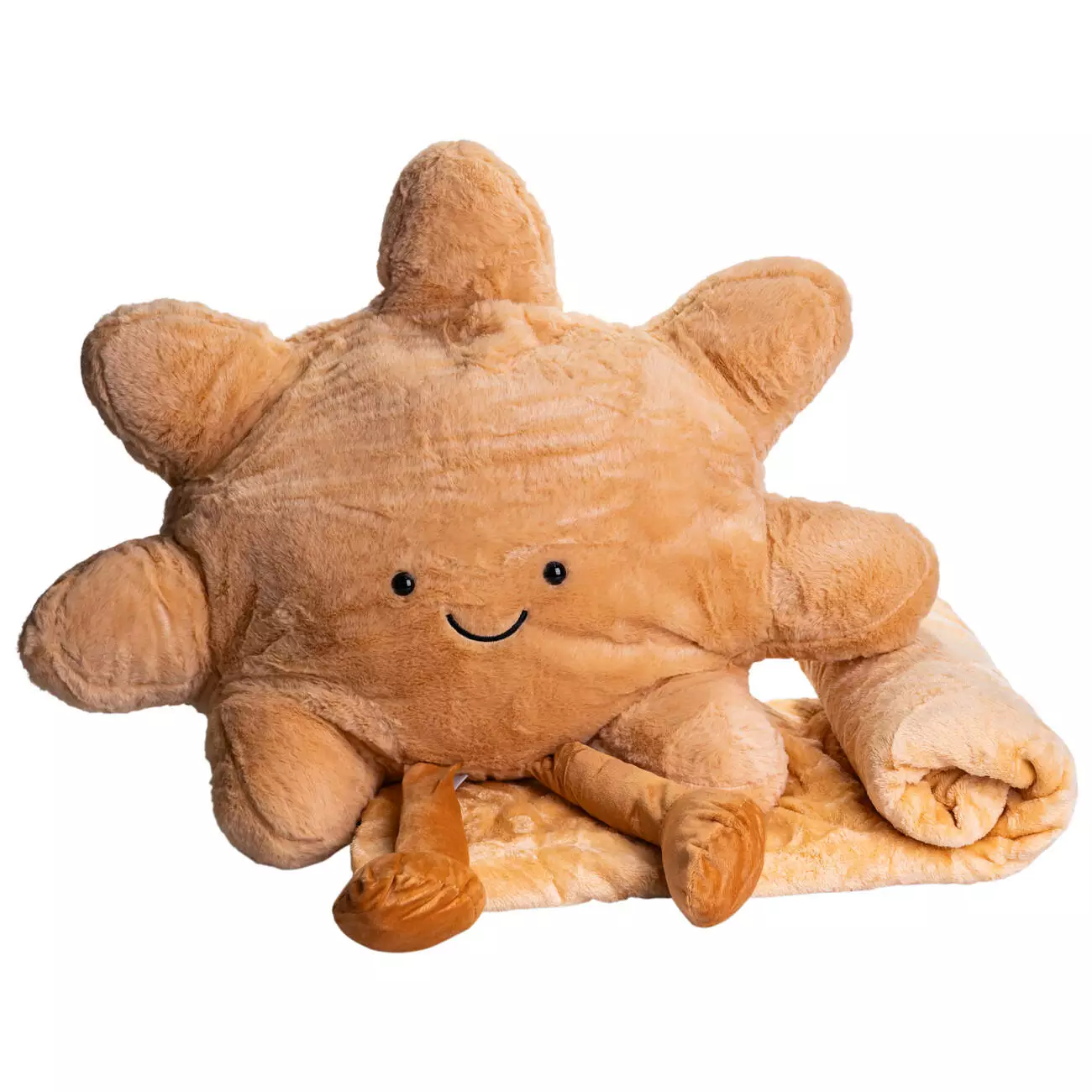 М’яка подушка-іграшка «Сонечко» з пледом — це практичний текстильний виріб, який поєднує декоративну функцію та можливість щоденного використання. Діаметр подушки 60 см робить її зручною для розміщення на ліжку, дивані або в дитячій кімнаті. Формат підходить як для відпочинку, так і для створення затишної атмосфери в приміщенні.
